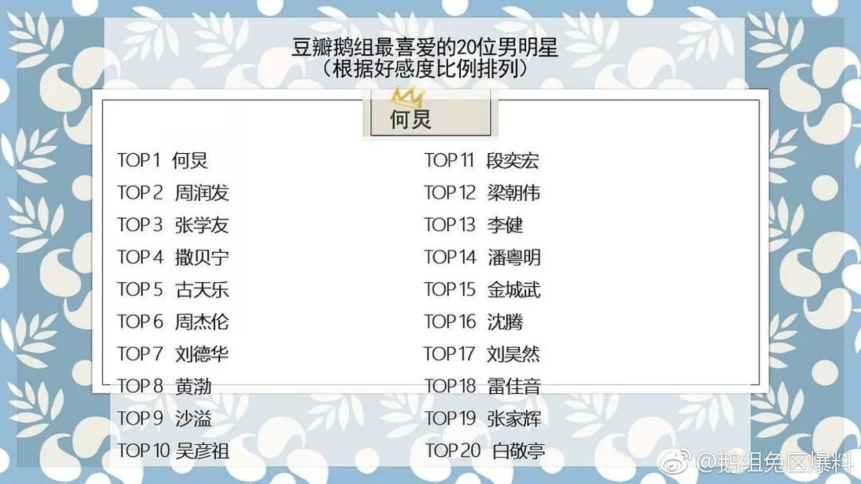 Đứng vị trí thứ nhất trong bảng xếp hạng này thuộc về nam diễn viên, ca sĩ, người dẫn chương trình Hà Cảnh. Hà Cảnh sinh năm 1974 dẫn chương trình tiết mục của đài truyền hình Trung Ương Đại phong sa, bên cạnh đó anh cũng vô cùng được yêu thích với vai trò người dẫn chương trình trong chương trình của đài Hồ Nam - Khoái lạc đại bản doanh và nhiều chương trình khác.