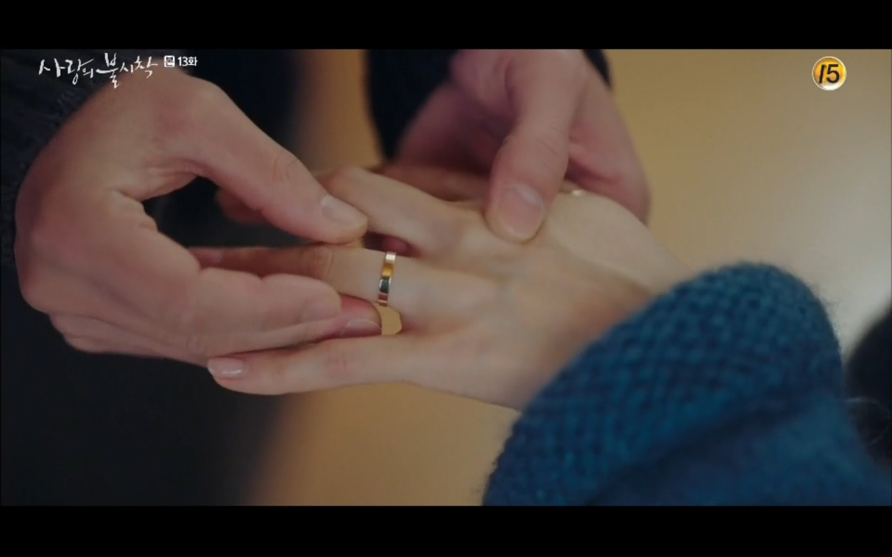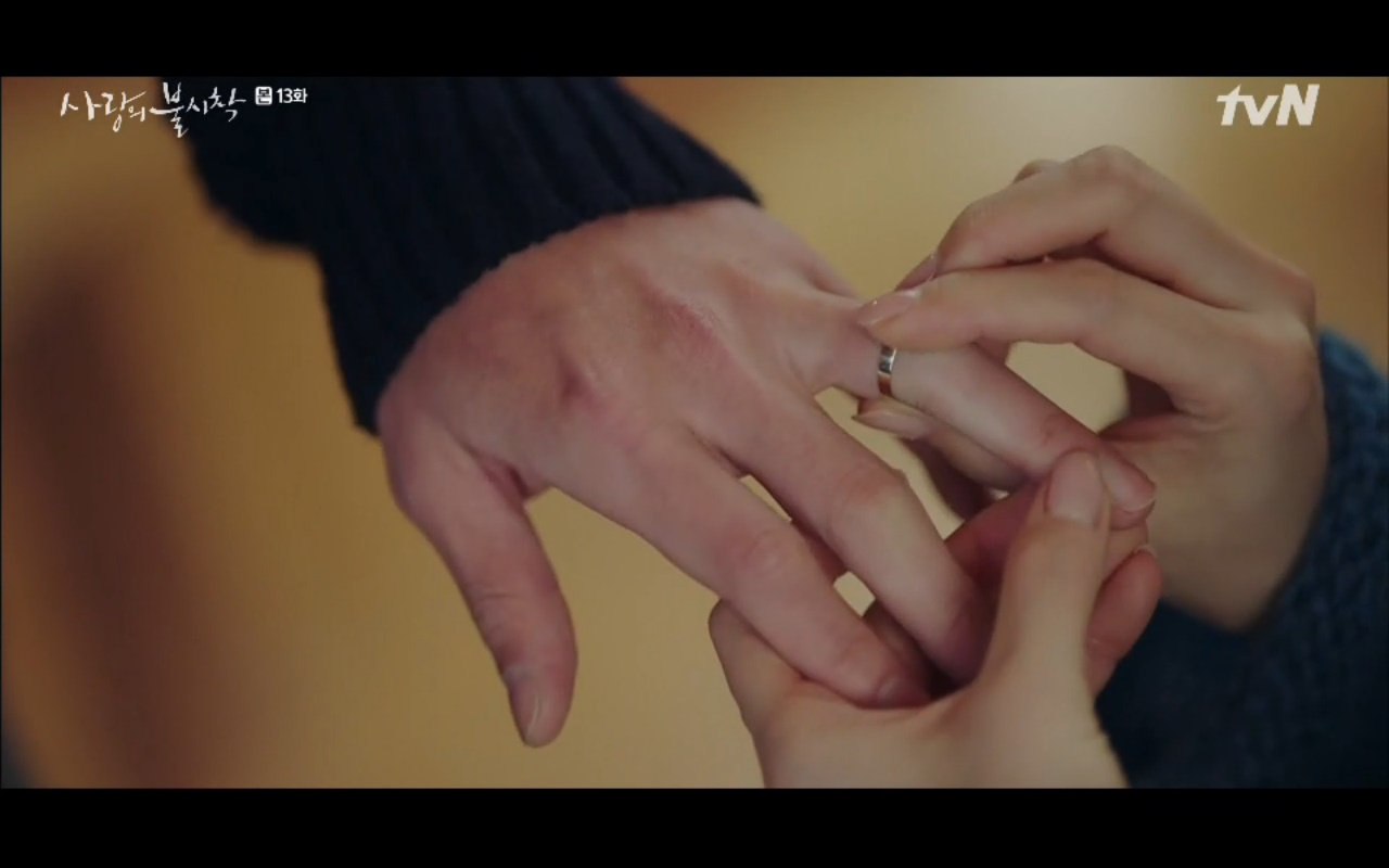 Hạ cánh nơi anh tập 13 tiếp nối phân cảnh Ri Jung Hyuk (Hyun Bin) an ủi Yoon Se Ri (Son Ye Jin) trong ngày sinh nhật cô đơn. Mặc dù rất yêu và muốn anh ở lại nhưng Se Ri vẫn đặt chữ hiếu lên đầu, cô khuyên anh sớm trở về gia đình trước khi mọi thứ vượt ngoài tầm kiểm soát. Trước hết Se Ri cùng Jung Hyuk và những người đồng đội trải qua một ngày sinh nhật hạnh phúc mà không hề hay biết mọi hành của họ đều nằm trong tầm ngắm của Jo chul Kang. Quà sinh nhật ý nghĩa và bất ngờ nhất mà Se Ri nhận được chính là cặp nhẫn đôi của Jung Hyuk. Món quà chính thức trở thành mòn đồ ước hẹn nhân danh tình yêu tha thiết của cả hai.
