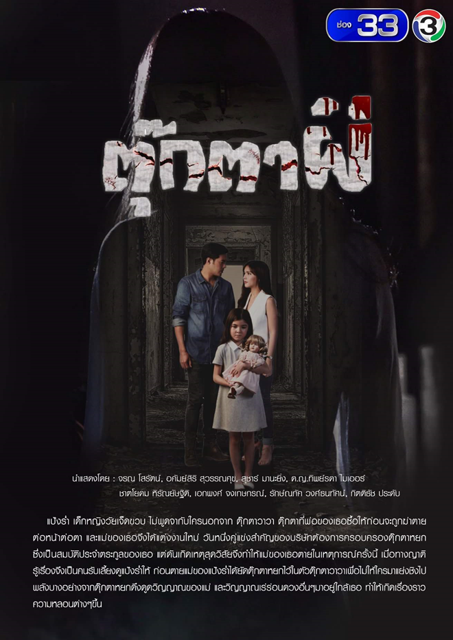 Về Tukta Phee (tạm dịch: Búp bê ma), dự án phim kinh dị của Aom Sushar và Top Jaron. Phim được chuyển từ một vở kịch nổi tiếng được sản xuất vài chục năm trước. Tukta Phee miêu tả tình mẫu tử thiêng liêng và thần giao cách cảm đặc biệt giữa người mẹ đã mất và con gái thông qua búp bê cũ. Dù chưa ấn định ngày lên sóng nhưng fan dự đoán đài CH3 sẽ cho Tukta Phee lên sóng vào đúng mùa Halloween năm nay.