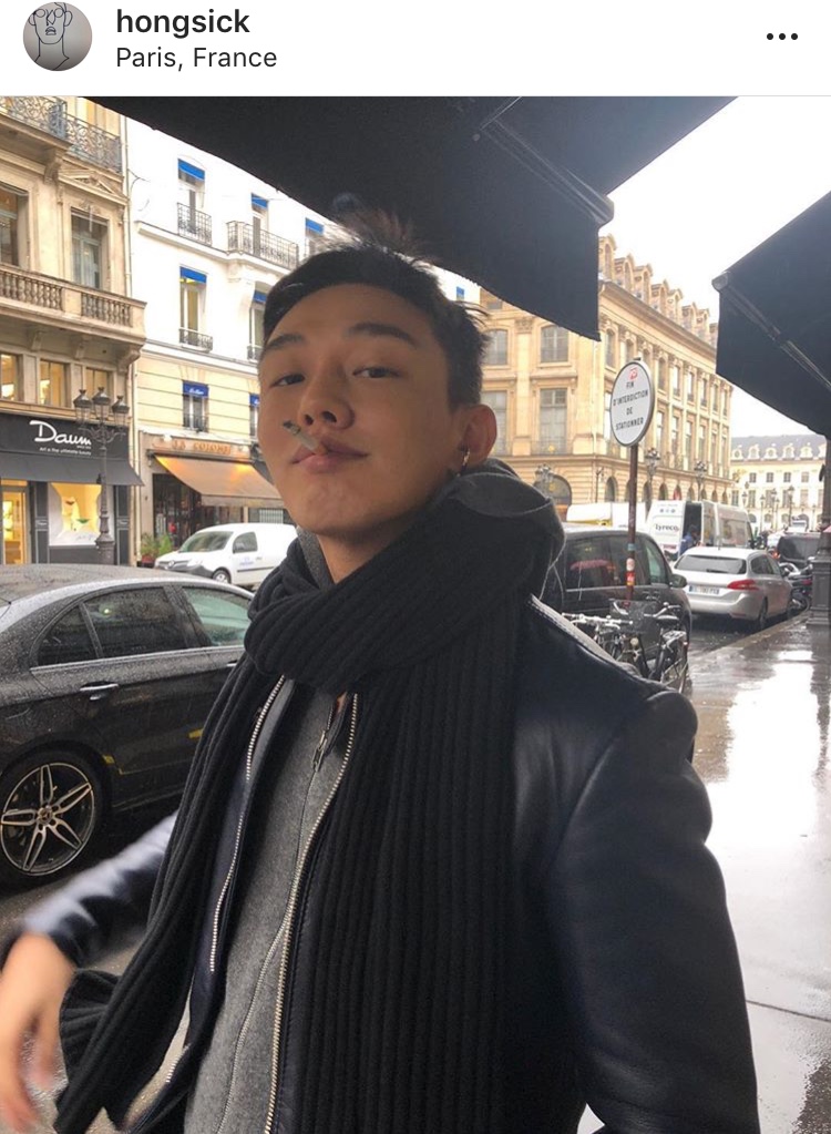 Yoo Ah In ở Pháp cùng Jung Joon Young. Anh đang nhâm nhi điếu thuốc, trông cá tính và mạnh mẽ.