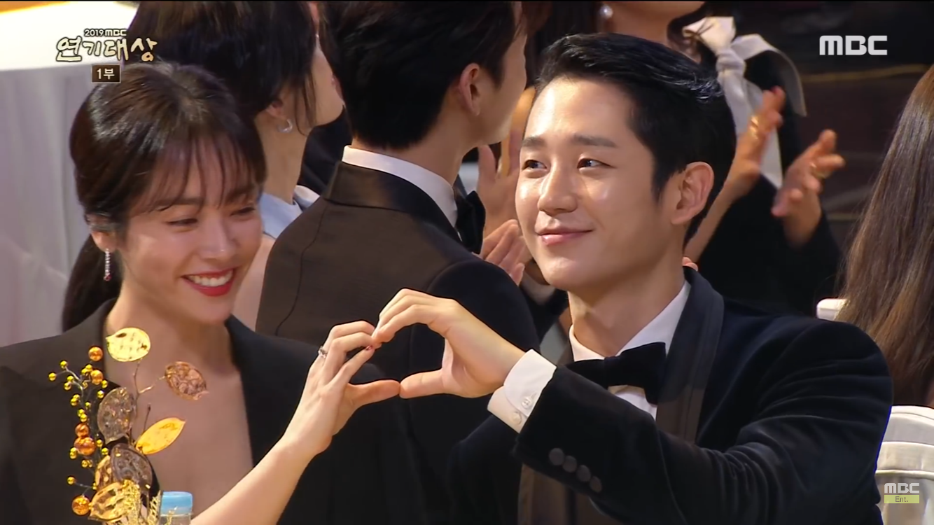 Khi Jung Hae In được hỏi liệu anh ấy có chấp nhận lời mời casting khác để đóng cặp với Han Ji Min không, anh ấy đã trả lời không do dự: “Tất nhiên là tôi sẽ làm”. Cặp đôi đã kết thúc khoảnh khắc ngọt ngào của mình bằng tạo hình trái tim tay kèm theo nụ cười ngại ngùng. Phần phỏng vấn này đã đánh dấu phân khúc được xem nhiều nhất trong tất cả các chương trình lễ trao giải.