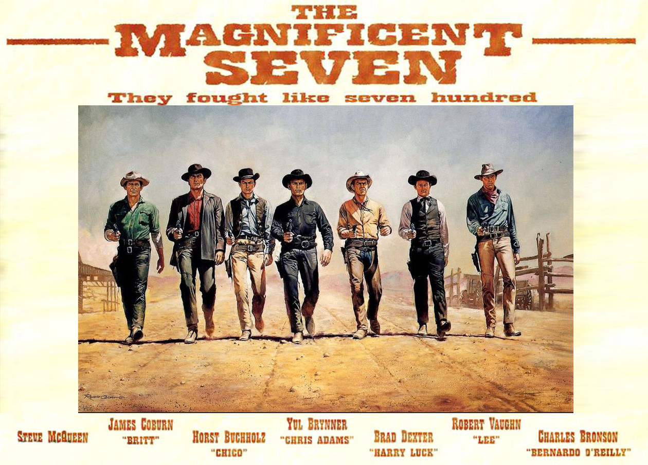 Dưới sự kiểm soát độc tài của nhà tư bản Bartholomew Bogue, thị trấn tuyệt vọng, do Emma Cullen dẫn đầu, buộc phải nhờ vào sự bảo vệ từ bảy tay súng nằm ngoài pháp luật, bao gồm người săn tiền thưởng, con bạc và súng đi thuê.