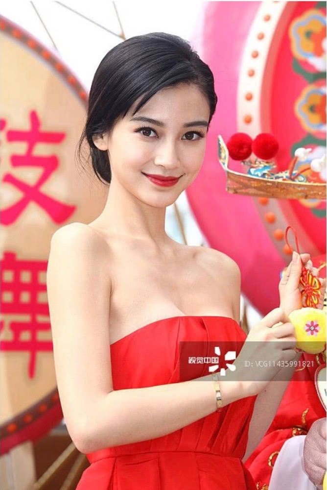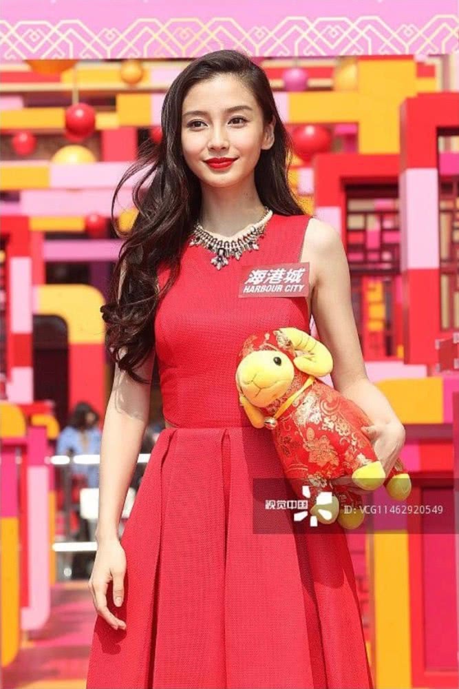 Năm 2013, Angelababy xuất hiện trong chiếc váy màu đỏ vừa dịu dàng vừa gợi cảm với nụ cười tươi tắn.