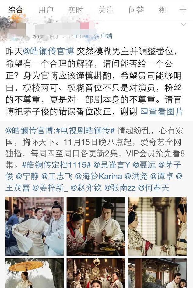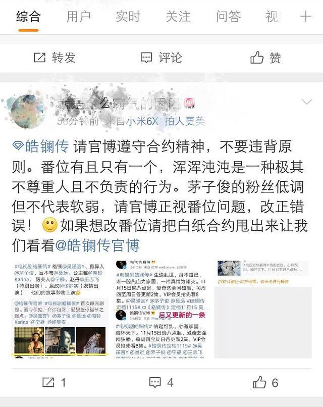 Cũng chính điều này đã làm fan hâm mộ của Mao Tử Tuấn cảm thấy không hài lòng, liền quay qua xâu xé đoàn phim Hạo Lan truyện, họ cho rằng weibo chính thức của Hạo Lan truyện đột nhiên làm mơ hồ đi nam chính, đồng thời với việc điều chỉnh đi phiên vị là hành vi không tôn trọng kịch bản cũng như không hề tôn trọng diễn viên.