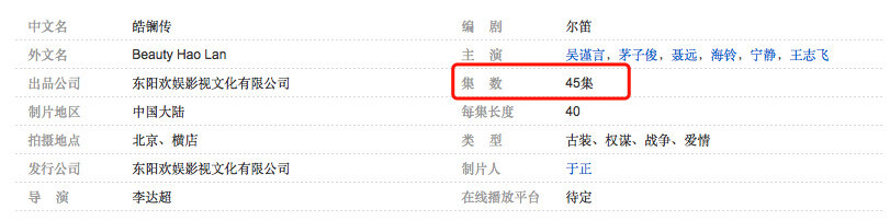 Trước kia trên Baidu số tập là 45, nhưng trong phí đầu tư phim thì số tập là 63 tập nhiều hơn tới 18 tập.