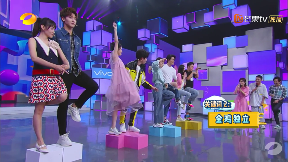 Tiếp theo là “Bán manh”, “Người mẫu”, “xấu hổ”, “trang điểm”. Suy nghĩ và biểu cảm của các khách mời quả là đa dạng. Cuối cùng phần thắng nhiều bục nhất đó chính là Châu Khiết Quỳnh và Hải Đào.