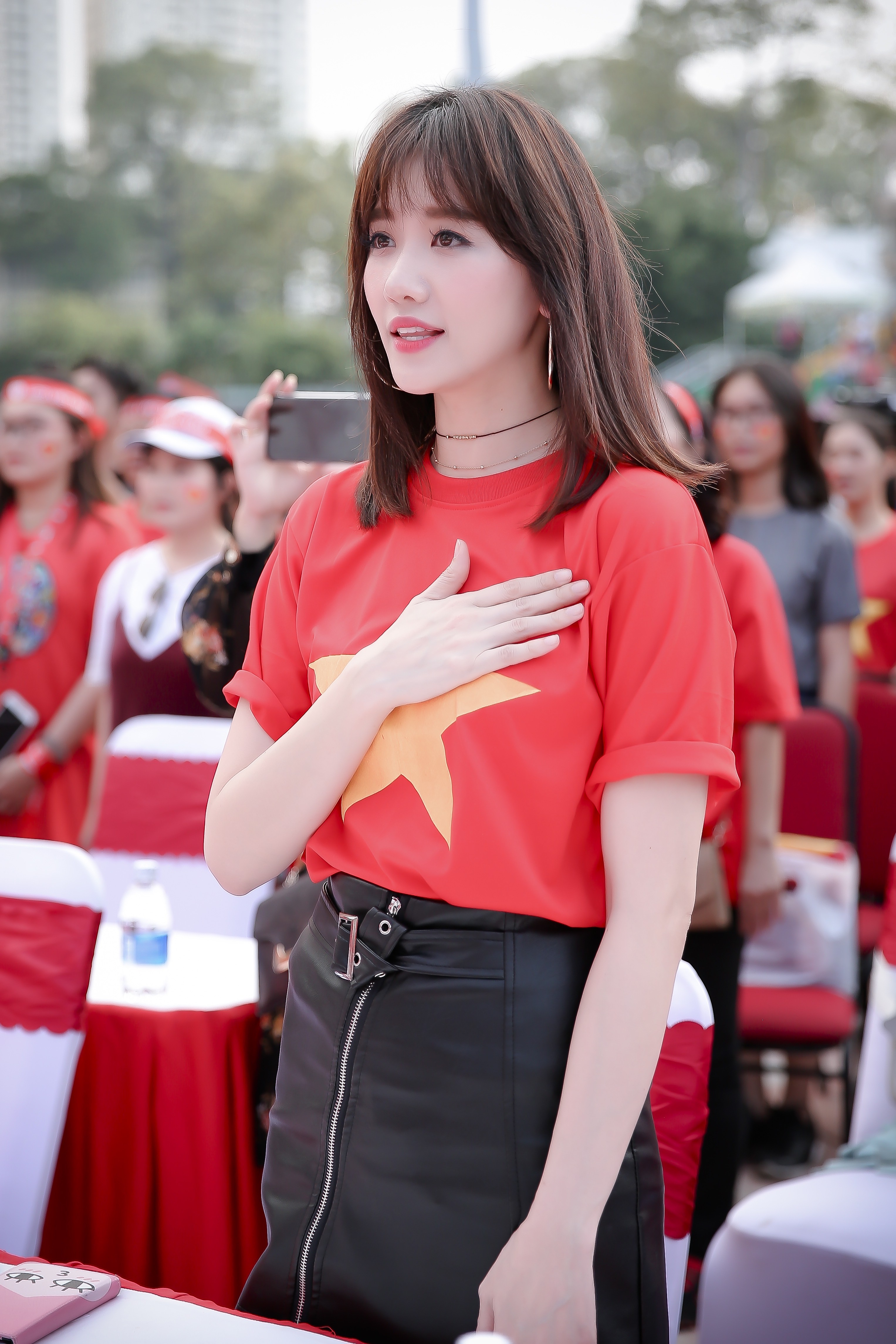 Hari Won tâm sự: “Dõi theo diễn biến của các tuyển thủ U23 tại giải đấu châu Á, tôi thật sự khâm phục, tự hào vì niềm đam mê và sự kiên định của các bạn ấy với nghề. Tôi cảm thấy vô cùng vinh dự khi được góp mặt, dù chỉ ở một vai trò khiêm tốn trong buổi lễ vinh danh này tại TP.HCM”.