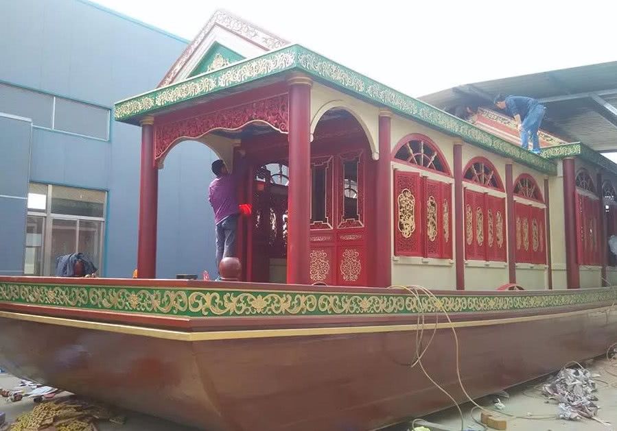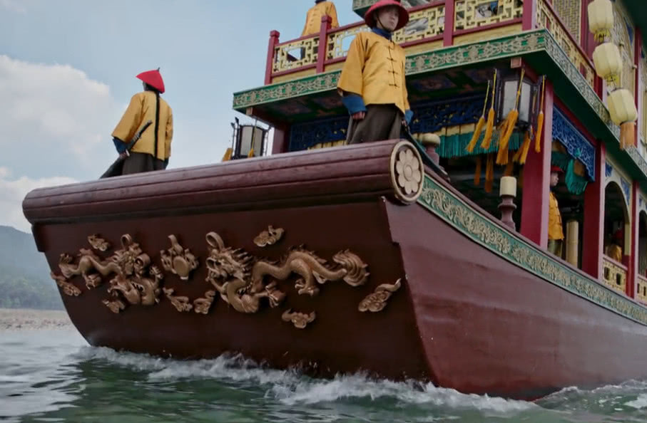 Thế tại sao lại nói con thuyền phục vụ cho việc “đi chơi” này của Càn Long lại là mắc nhất? Câu trả lời rất đơn giản, vì nó được đoàn làm phim mời riêng công ty chế tác đạo cụ có chuyên môn về làm ra. Chiếc thuyền này có chiều dài 20m, chiều rộng là 5,3m và chi phi đốt vào đây là 2,4 triệu NDT. Bởi vì thân thuyền quá nặng, để đưa được đến trường quay là một chuyện khá vất vả vì thế chúng đã được chia ra làm nhiều phần khác nhau để bố trí và lắp đặt, khi mọi thứ đã hoàn tất thì sẽ có một chiếc xe craneman (xe cần trục) đến đưa chiếc thuyền xuống nước. Chỉ cần nghĩ tới cũng biết cả quá trình diễn ra vất vả như thế nào rồi.