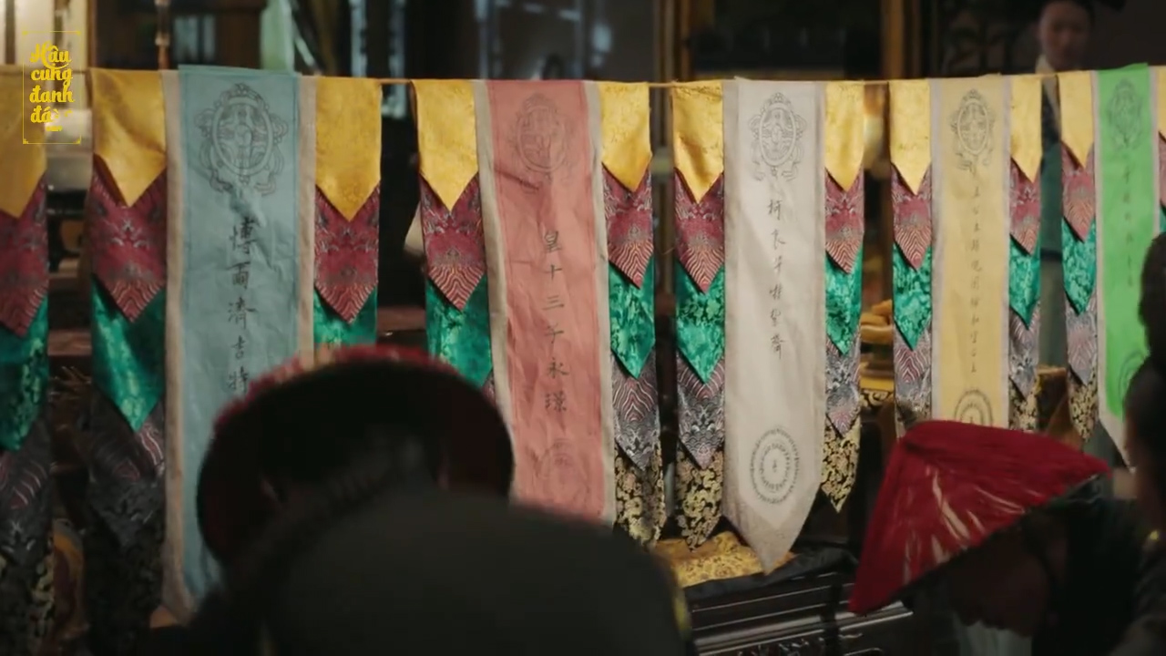 Dực Khôn cung nương nương, danh xưng của Hoàng hậu sau khi bị tước mất kim sách kim bảo, cũng cử đại diện đến xem xử án. Thêu vội những nét thêu chữ thập cuối cùng, bức cờ cầu kinh cho các nạn nhân bị Hoàng quý phi giết của Như Ý là bản cáo trạng hùng hồn dán vô mặt hung thủ. Và bức cờ này cũng lại đại diện hợp pháp của nương nương.