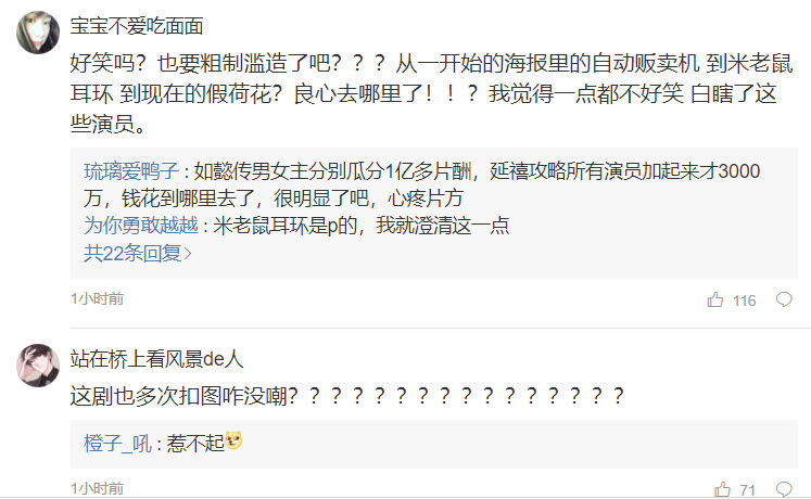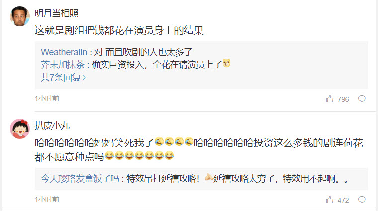 Mặc dù kỹ xảo đồ họa của Trung Quốc trong những năm gần đây đã được ngợi khen rất nhiều thông qua các bom tấn điện ảnh, thế nhưng ở địa hạt phim truyền hình, để tiết kiệm kinh phí cho những chi tiết nhỏ nhặt này, đoàn phim đã không đầu tư đúng mức. Những cành sen giả đến tội nghiệp và trở thành chủ đề để cư dân mạng bàn tán trên Weibo.