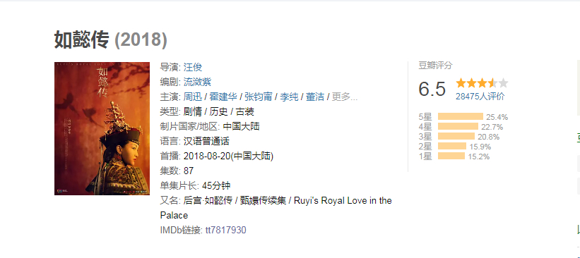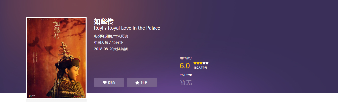 Điển hình như sau khi Hậu cung Như Ý truyện phát sóng, trên trang mạng đánh giá phim nổi tiếng khó tính Douban đã ghi nhận được 10358 người đánh giá bình luận, số điểm mà Hậu cung Như Ý truyện đạt chỉ được là 6.7, khá thấp so với mong đợi của fan bộ phim. Thậm chí là đến sáng ngày hôm nay, điểm số Douban của Hậu cung Như Ý truyện bị giảm điểm còn 6,5 và nhận được gần 28 ngàn người đánh giá. Có thể nói số điểm này còn thấp hơn điểm số vừa mới phát sóng của Diên Hi công lược lúc trước đây, thế nhưng khác nhau là ở những bình luận đánh giá của cư dân mạng.