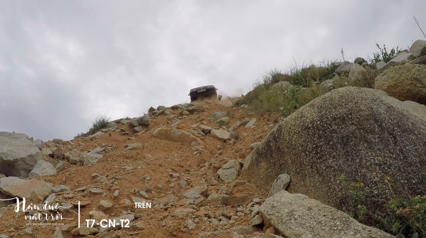 Xe chở đất đá tuột rào chắn khiến Hoài Phương gặp chướng ngại vật bất ngờ.