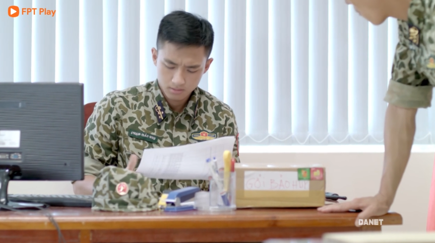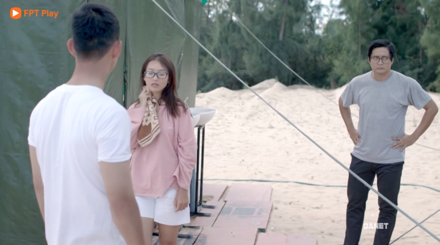 Đại úy Duy Kiên không khỏi ghen tuông vì bác sĩ Hoài Phương đeo kính để nhìn các nam quân nhân khoe hình thể.