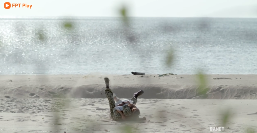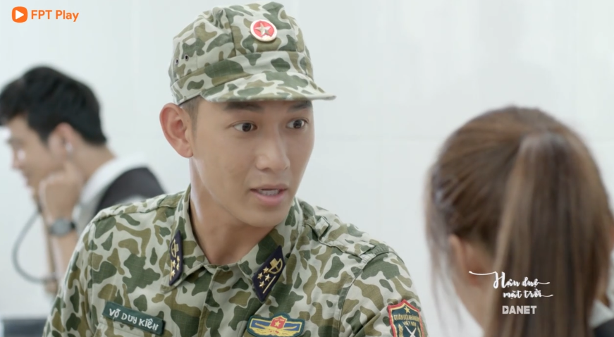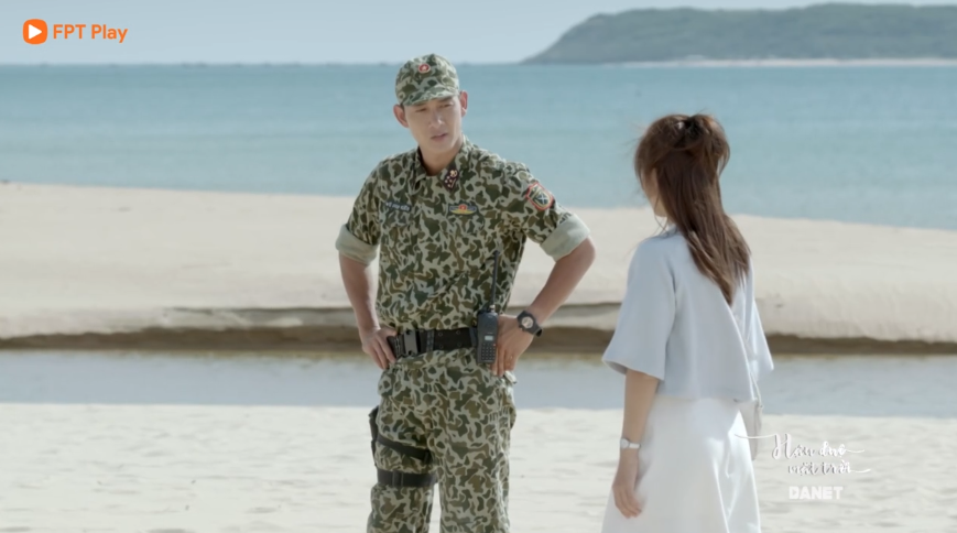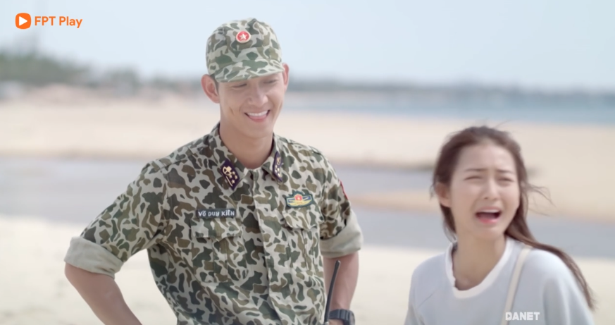 Cảnh quay Đại úy Duy Kiên chỉ huy đồng đội cùng chiếc trực thăng đến đón đoàn bác sĩ từ thành phố Hồ Chí Minh về đảo Hải Phong để lại ấn tượng sâu sắc trong phần cuối tập 6 Hậu duệ mặt trời. Dù gặp lại bác sĩ Hoài Phương, nam chính không hề nhìn cô một lần, trong khi Hoài Phương vô cùng sửng sốt khi gặp lại người con trai tưởng chừng đã hết duyên. Sau đó, cả hai tiếp tục chạm mặt nhau trên cồn cát trắng, lần này, Duy Kiên trêu đùa rằng nữ chính đang giẫm lên mìn còn sót lại, khiến cô vô cùng hoảng loạn và sợ hãi. Cũng từ đây, cặp đôi chính có cảnh quay ngã đè lên nhau làm người xem thích thú.