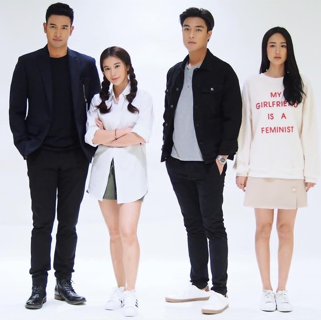 Kao Supassra cao 1m57 và so với bạn diễn đều cao trên 1m8 như này thì thật khổ tâm.
