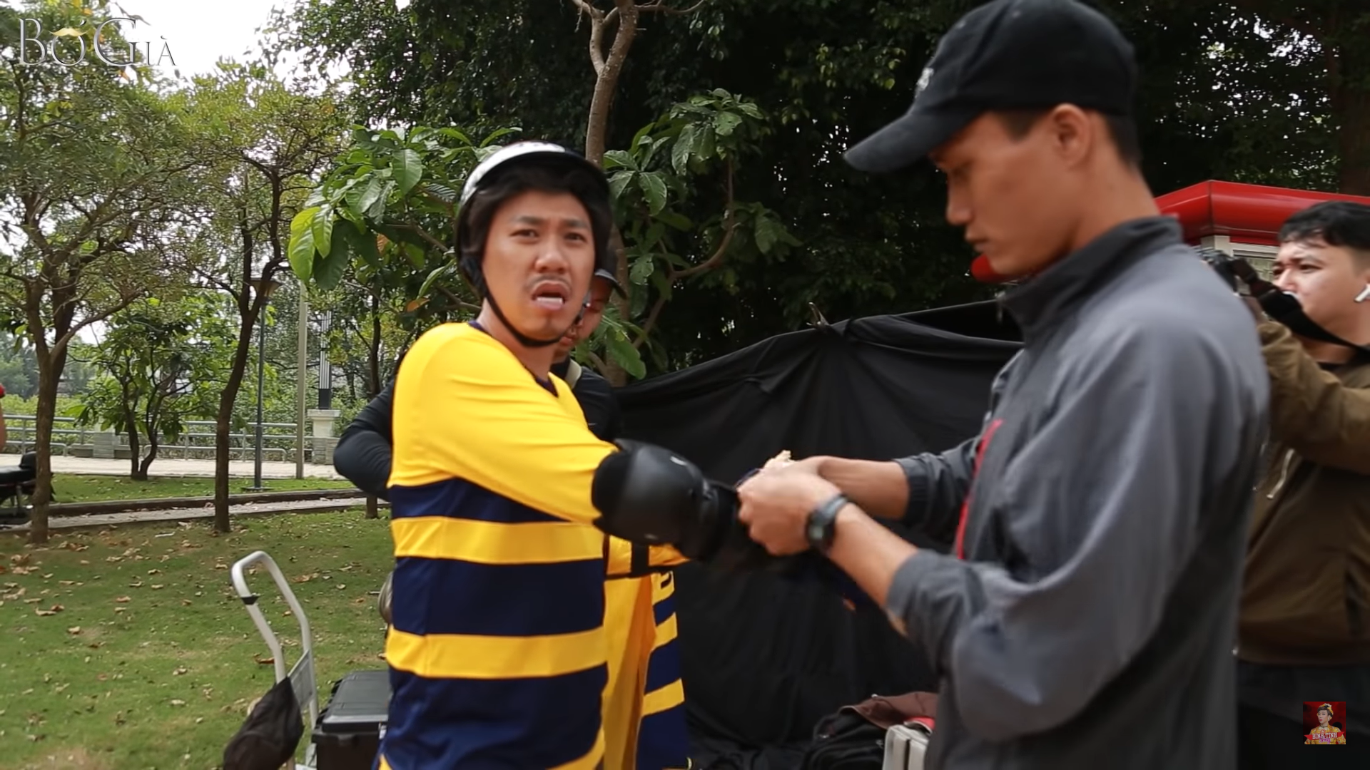 Hậu trường'Bố già' tập 4: Sau cảnh bắt cướp, Trấn Thành tự tin… hát nhép nhạc phim 'Con đường tôi'