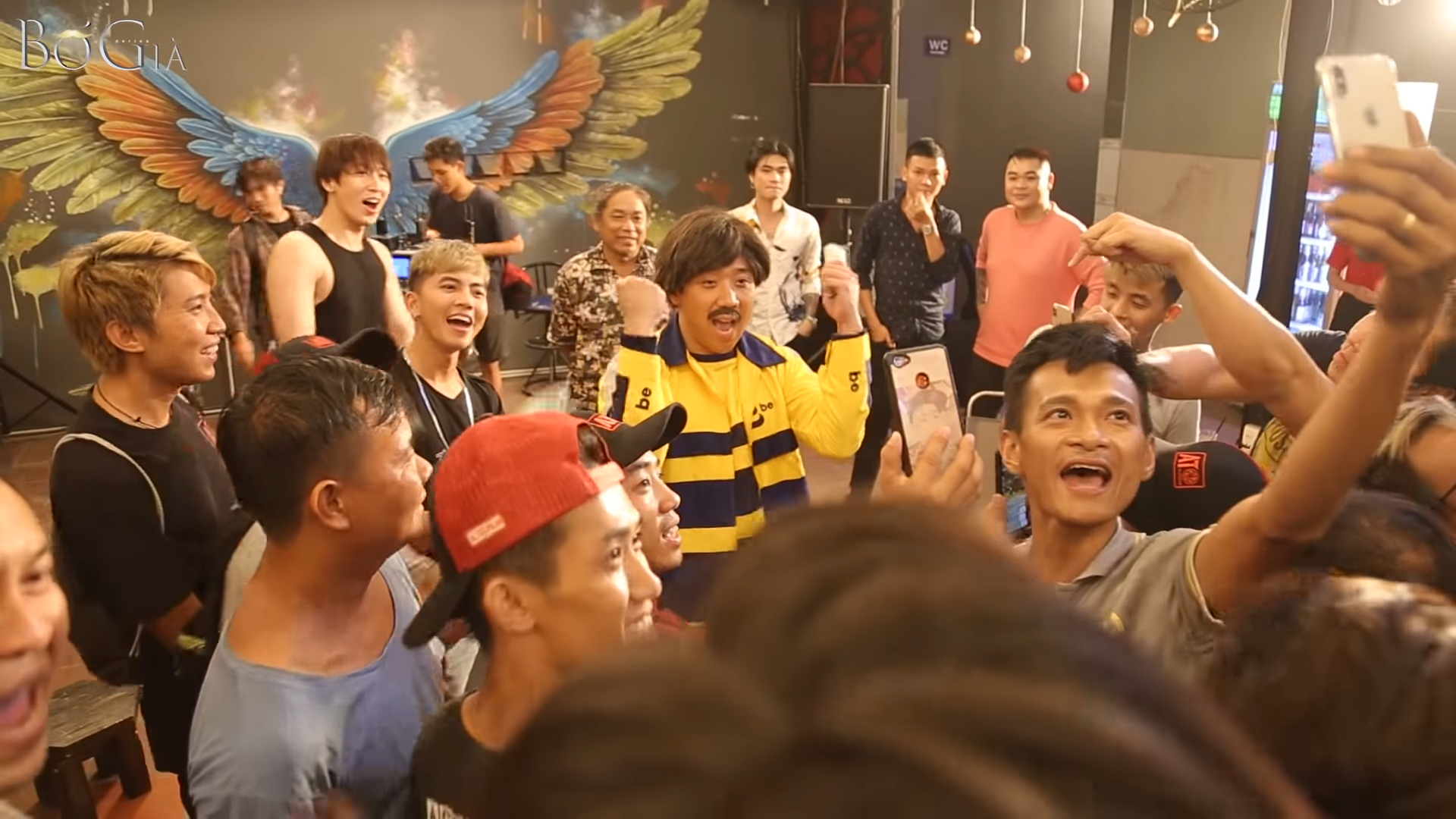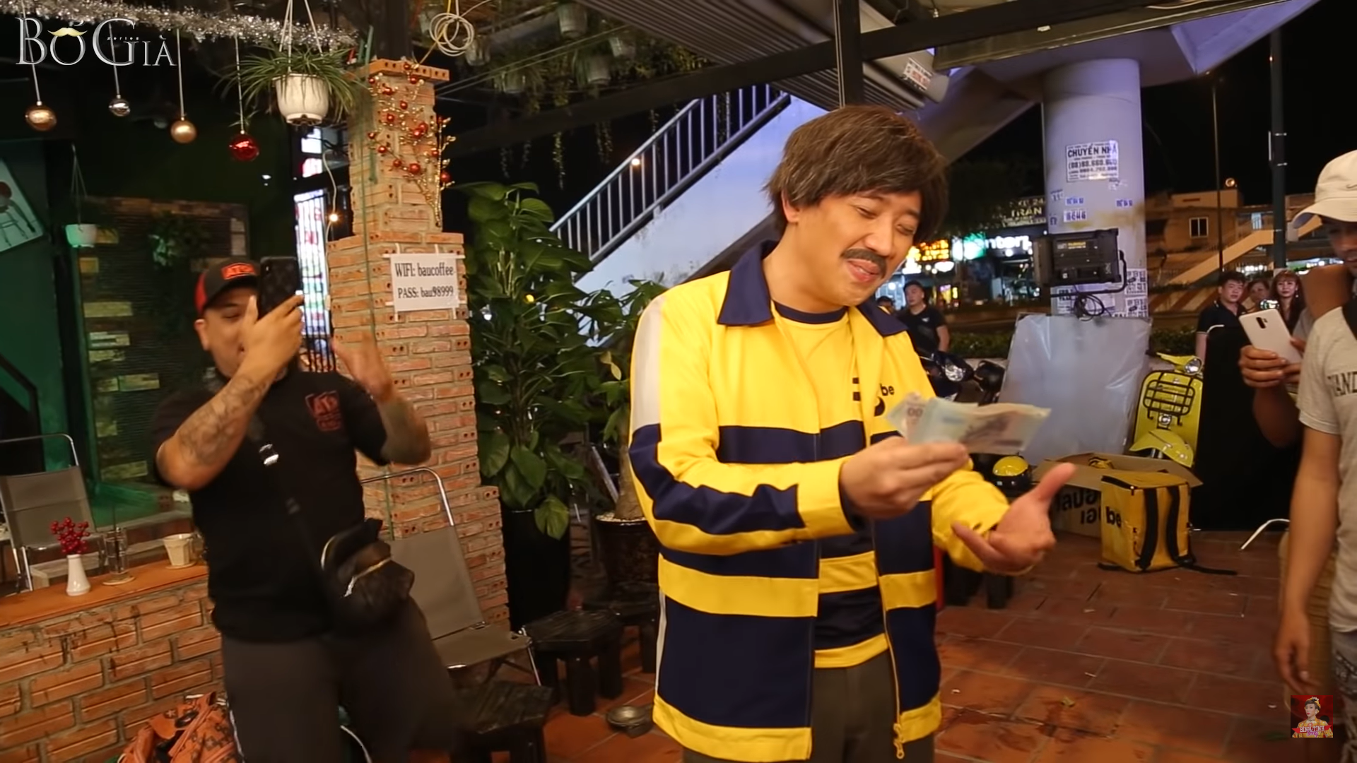 Kết thúc những cảnh quay cuối cùng trong phim cũng là khi sắc trời đã tối mịt. Mặc dù vậy, cả ekip vẫn vô cùng sung sức, hò reo trước màn lì xì đặc biệt của Trấn Thành dành cho cả đoàn phim vì những nỗ lực mà họ đã cống hiến trong thời gian qua. Bố già trong phim thì có thể nghèo nhưng Trấn Thành ngoài đời thì chắc chắn vô cùng sung túc và hào phóng rồi!