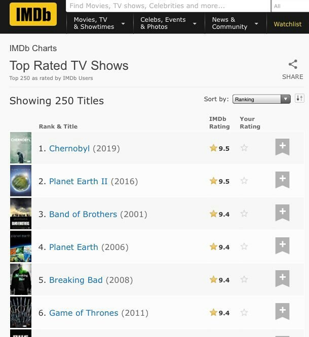 Chỉ vài tuần trước khi tập cuối Game of Thrones ra mắt, HBO đã âm thầm tung ra một “quả bom nguyên tử” mang tên Chernobyl. Là mini-series 5 tập theo thể loại chính sử, Chernobyl kể lại thảm họa hạt nhân tồi tệ xảy ra ở Liên Xô trong thập niên 80, qua góc nhìn của những nạn nhân và nhân viên khắc phục sự cố. Những thước phim tăm tối, nặng nề, hình ảnh và nhạc phim đầy ám ảnh đã giúp Chernobyl đạt số điểm cao chót vót trên chuyên trang IMDb. Điều trùng hợp là trước đó, các fan Game of Thrones cũng thường xuyên lên IMDb để chê bai, chấm điểm thấp cho season 8. Vậy là Chernobyl đã “hưởng sái” cảm tình của những khán giả đang bực bội về mùa cuối Game of Thrones.