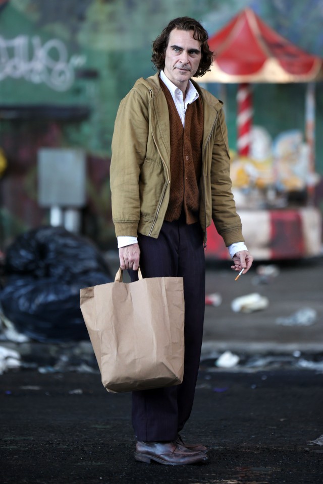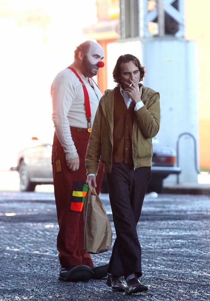 Mới đây, một số hình ảnh đầu tiên từ phim trường bộ phim Joker này đã được tung lên mạng. Trong ảnh, nam diễn viên 46 tuổi, từng ba lần được đề cử Oscar Joaquin Phoenix vào vai Arthur, gã đàn ông sau này sẽ trở thành kẻ thù nguy hiểm nhất của Người Dơi Batman. Arthur đang mặc một bộ đồ bình thường, tay xách một túi đồ to và đang đi qua một khu phố ổ chuột bẩn thỉu, mặt đất đầy những túi rác. Tuy nhiên, Arthur không có vẻ gì là buồn bã, thậm chí gã còn cười phớ lớ yêu đời và véo mũi của một anh hề đứng gần đó.