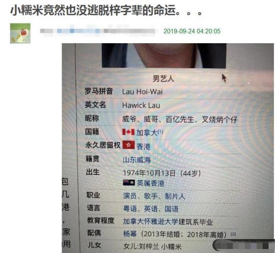 Hiện tại, trên mạng còn lộ diện ra cả thông tin cá nhân của con gái Lưu Khải Uy và Dương Mịch. Trong ảnh tiết lộ tên thật của Tiểu Gạo Nếp là Lưu Tử Lan thay vì là Lưu Nhu Mễ như mọi người lầm tưởng trước đó. Những thông tin khác đính kèm đều trùng khớp với dữ liệu trước đó của Tiểu Gạo Nếp. Nhiều ý kiến cho rằng dường như tên thật của con gái Uy - Mịch đã được lộ diện chính thức, đó là Lưu Tử Lan.