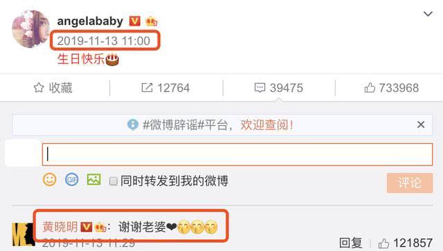 Còn nhớ vào cuối năm ngoái là sinh nhật của Huỳnh Hiểu Minh, Angelababy lạnh lùng đăng một bài viết kiểu “cho có” với bốn chữ ngắn gọn: “Chúc mừng sinh nhật”. Ngay sau đó, nam diễn viên liền bình luận dưới bài viết của cô: “Cảm ơn, bà xã”, nhưng dòng tin này cũng bị Angelababy ngó lơ.