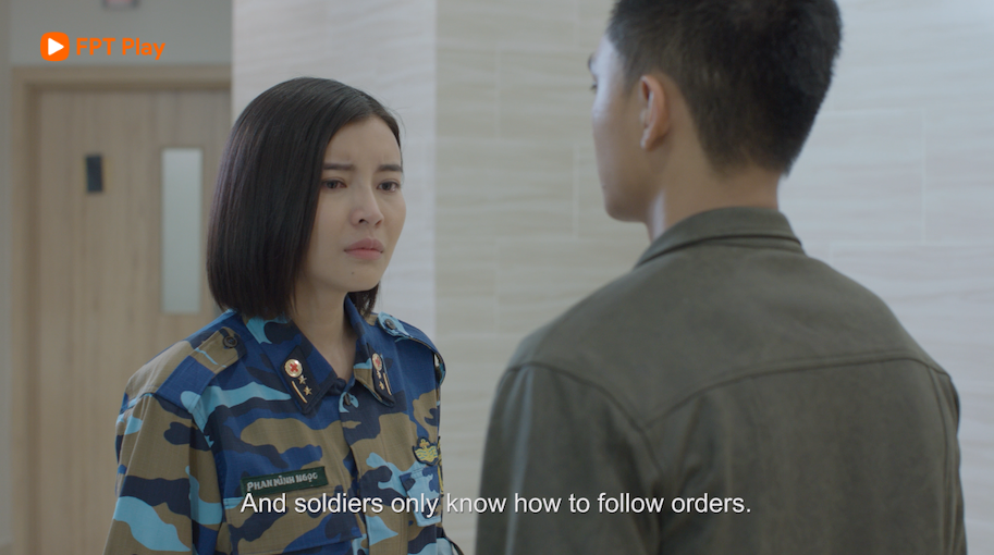 Tinh thần trách nhiệm và tình yêu với đất nước của Đại úy Duy Kiên cũng được thể hiện qua những lời nói gan ruột cùng bác sĩ Hoài Phương (Khả Ngân đảm nhận). Theo đó, là một người lính, Duy Kiên luôn hết lòng tuân theo mệnh lệnh và nguyên tắc quân đội. Lý do sống và làm việc của người lính trở nên gần gũi và chân thành hơn khi nam chính khẳng định việc bảo vệ Tổ quốc đơn thuần là để bảo vệ những người anh yêu thương.