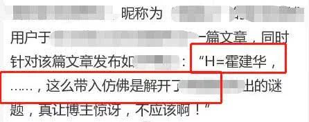 Có blogger cho biết tên đầy đủ của nam minh tinh đó viết tắt là HJH, ngay sau đó nhiều cư dân mạng bắt đầu suy đoán (H = Hoắc Kiến Hoa(, trực tiếp cho rằng nam minh tinh cùng nữ diễn viên phát sinh quan hệ rồi đưa phí chia tay chính là Hoắc Kiến Hoa. Thêm vào không ít truyền thông trước đây từng tiết lộ cuộc sống riêng tư của Hoắc Kiến Hoa rất lộn xộn nên không ít cư dân mạng tin chuyện này.