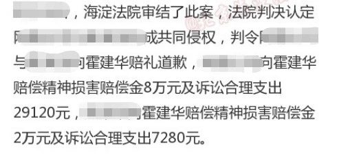 Thế nhưng, trên thực tế thì những tin này đều là tin đồn bịa đặt, càng nói càng ác ý nên phía Hoắc Kiến Hoa đã tức giận, kiện ngược lại những tên đã bịa đặt, dùng pháp luật để bảo vê quyền lợi hợp pháp của mình. Về sau tòa án tuyên phán Hoắc Kiến Hoa thắng kiện, những kẻ tung tin đồn bị phạt công khai xin lỗi đồng thời bồi thường 100 ngàn NDT (tương đương 340 triệu đồng).