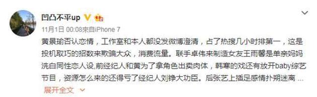 Điều đáng kinh ngạc hơn chính là có một cư dân mạng đứng ra chỉ điểm Hoàng Cảnh Du và người quản lý trước “bán thân thể để đổi lấy vai diễn” như bộ phim Phi trì nhân sinh của đạo diễn Hàn Băng hay chương trình truyền hình “Buông chú ra, baby“….