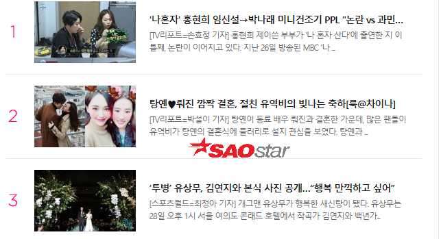 Đứng TOP 4 và 5 trong bảng xếp hạng được xem nhiều nhất tại Naver.