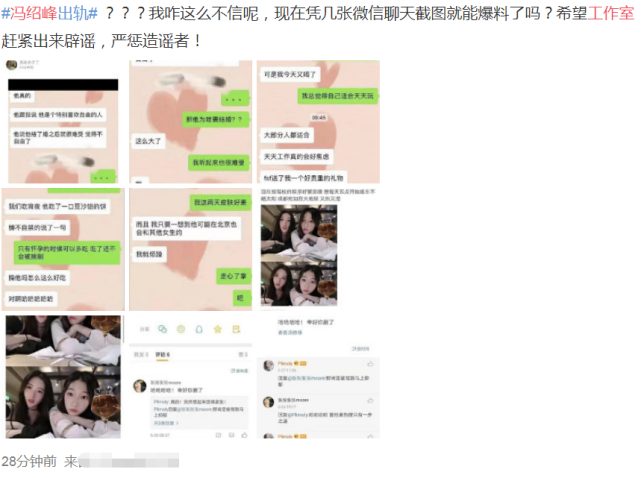 Ngay khi tin đồn ngoại tình của Phùng Thiệu Phong ngoại tình vào ngày 10 tháng 8 được đăng tải thì weibo chính thức phòng làm việc của nam diễn viên cũng đã lên tiếng phủ nhận tin đồn ngoại tình này. Đồng thời cho biết những bức hình tin đồn trên mạng đã được thông qua phần mềm chỉnh sửa, hoàn toàn là tin đồn ác ý.