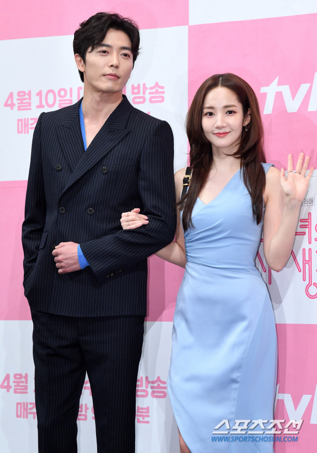 Khoảnh khắc của Park Min Young - Kim Jae Wook tại họp báo.