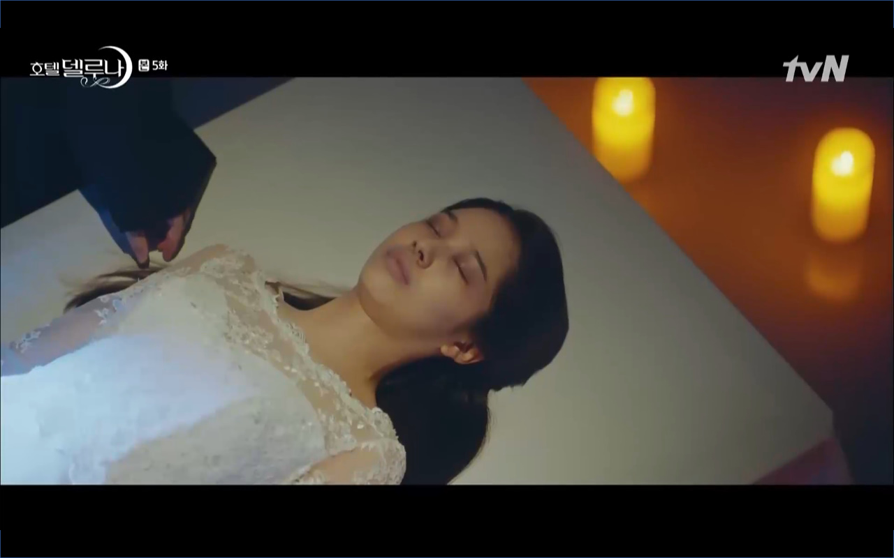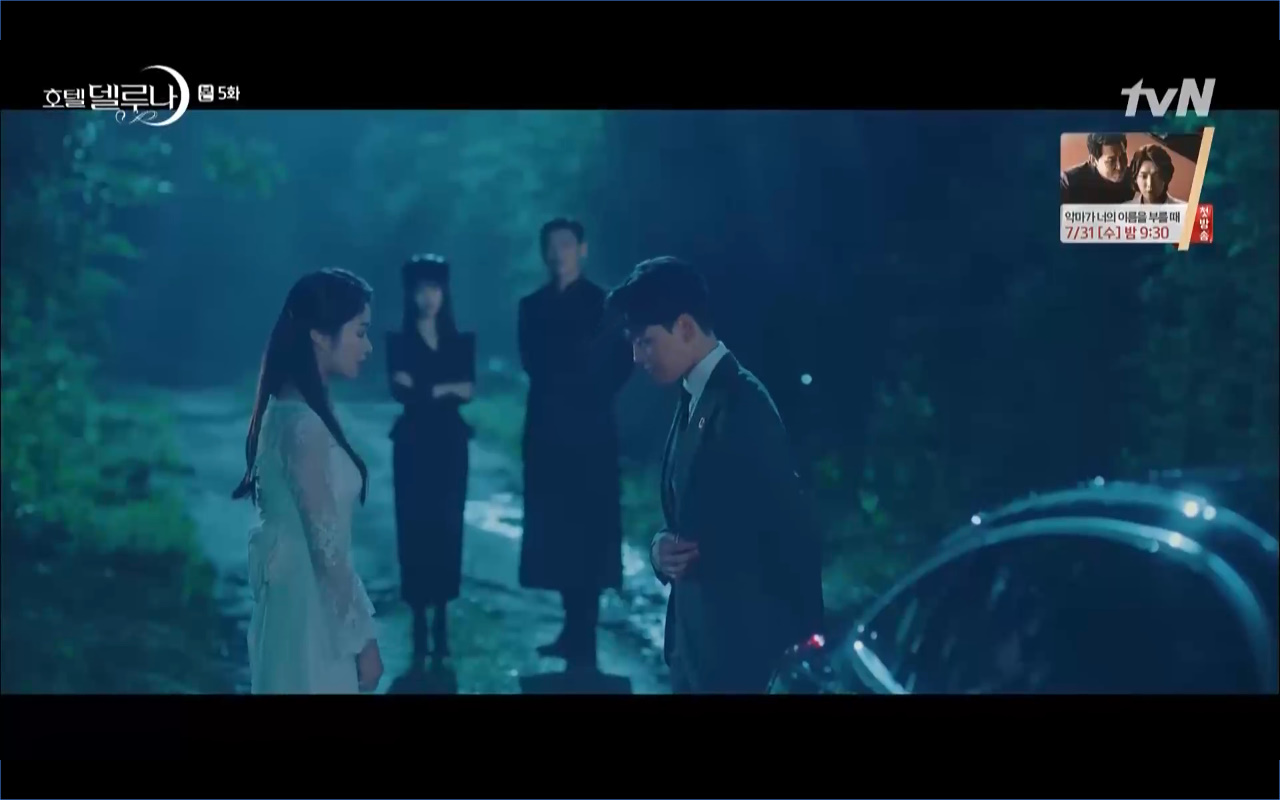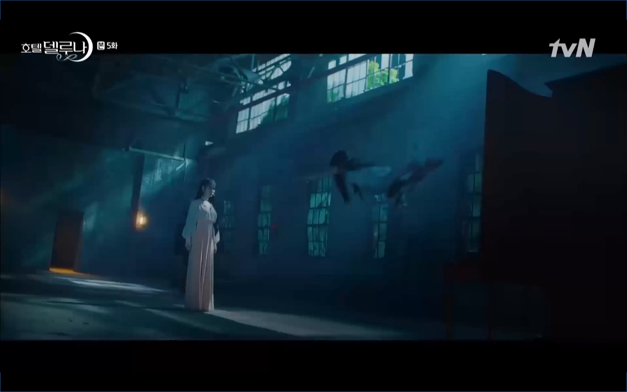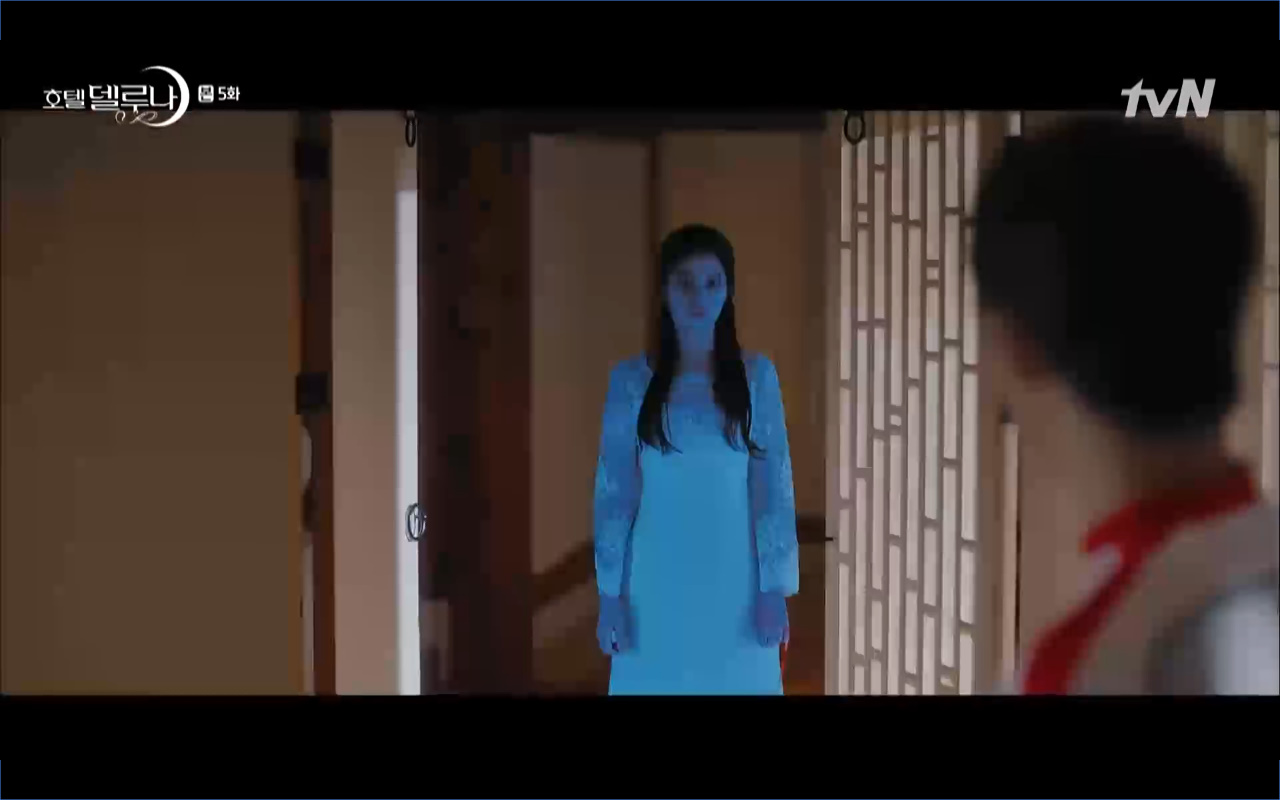 Tiếp nối tập trước của Hotel Del Luna là phân cảnh Jang Man Wol (IU) đến cứu Goo Chan Sung (Yeo Jin Goo) khỏi hồn ma quỷ dữ ở căn phòng số 13. Sau nụ hôn bất ngờ để ngăn chặn Chan Sung bị cuốn theo âm thanh mê hoặc của quỷ, Man Wol đã mở cửa để anh có thể thoát.