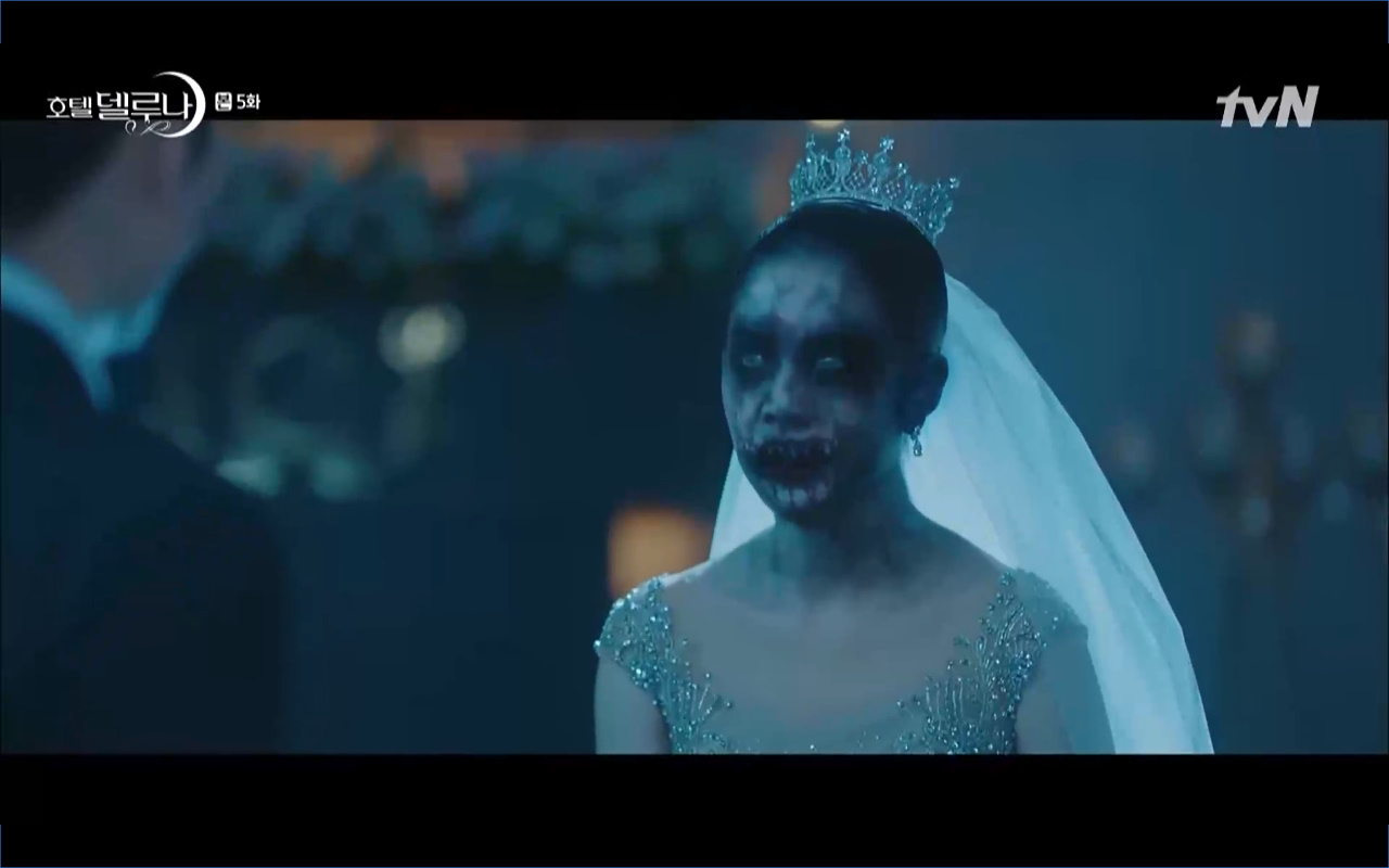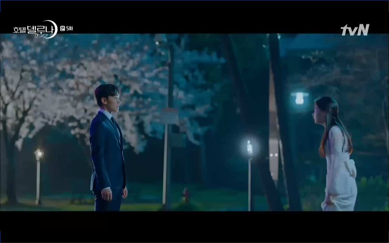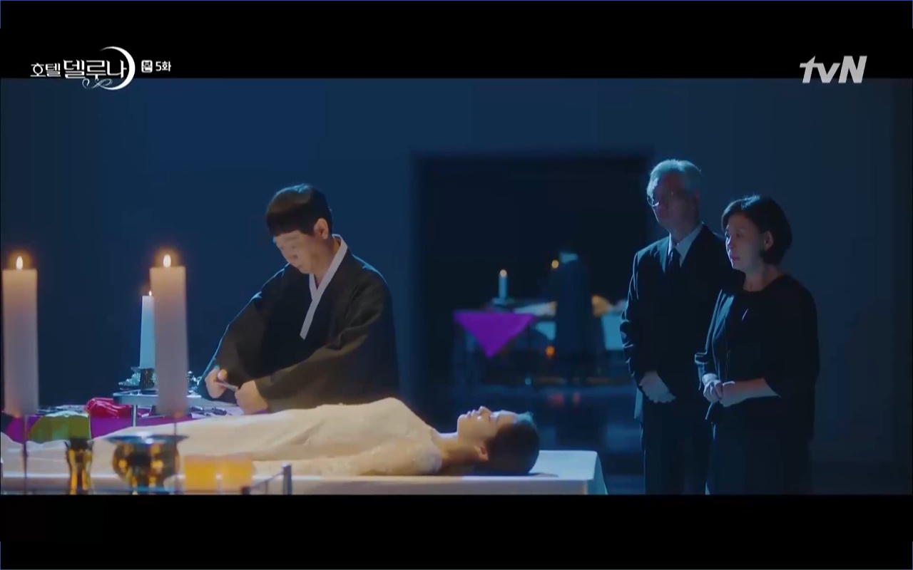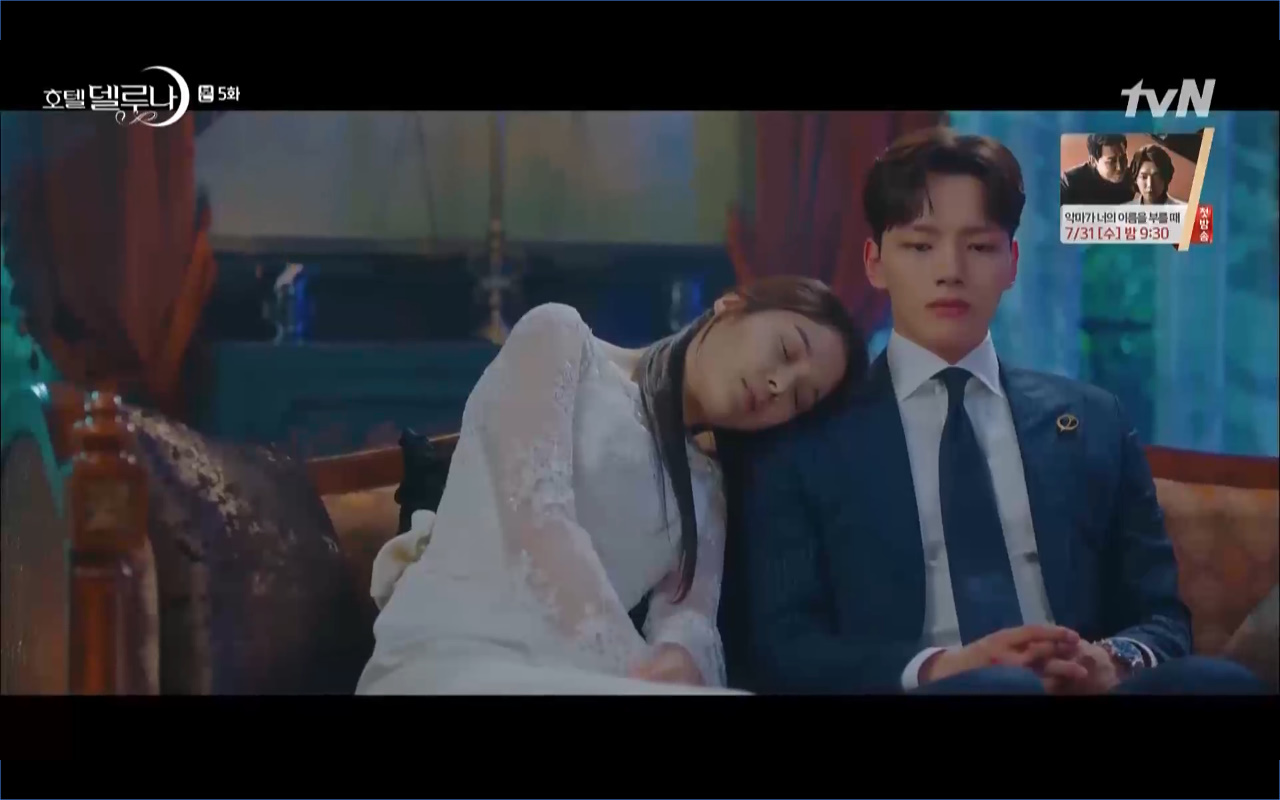 Tiếp nối tập trước của Hotel Del Luna là phân cảnh Jang Man Wol (IU) đến cứu Goo Chan Sung (Yeo Jin Goo) khỏi hồn ma quỷ dữ ở căn phòng số 13. Sau nụ hôn bất ngờ để ngăn chặn Chan Sung bị cuốn theo âm thanh mê hoặc của quỷ, Man Wol đã mở cửa để anh có thể thoát.