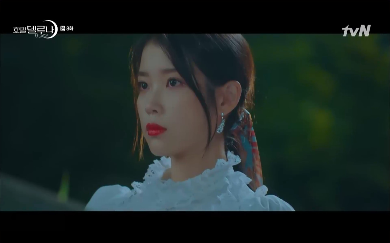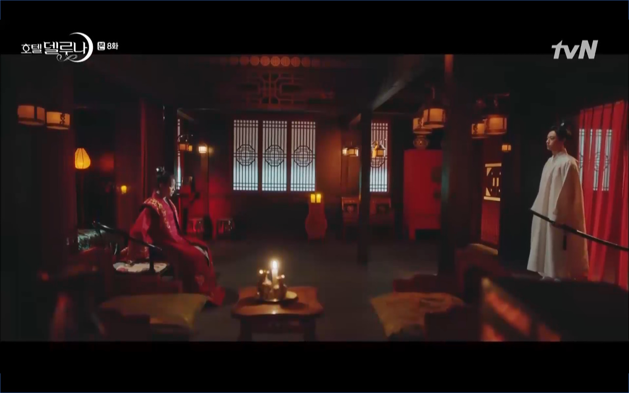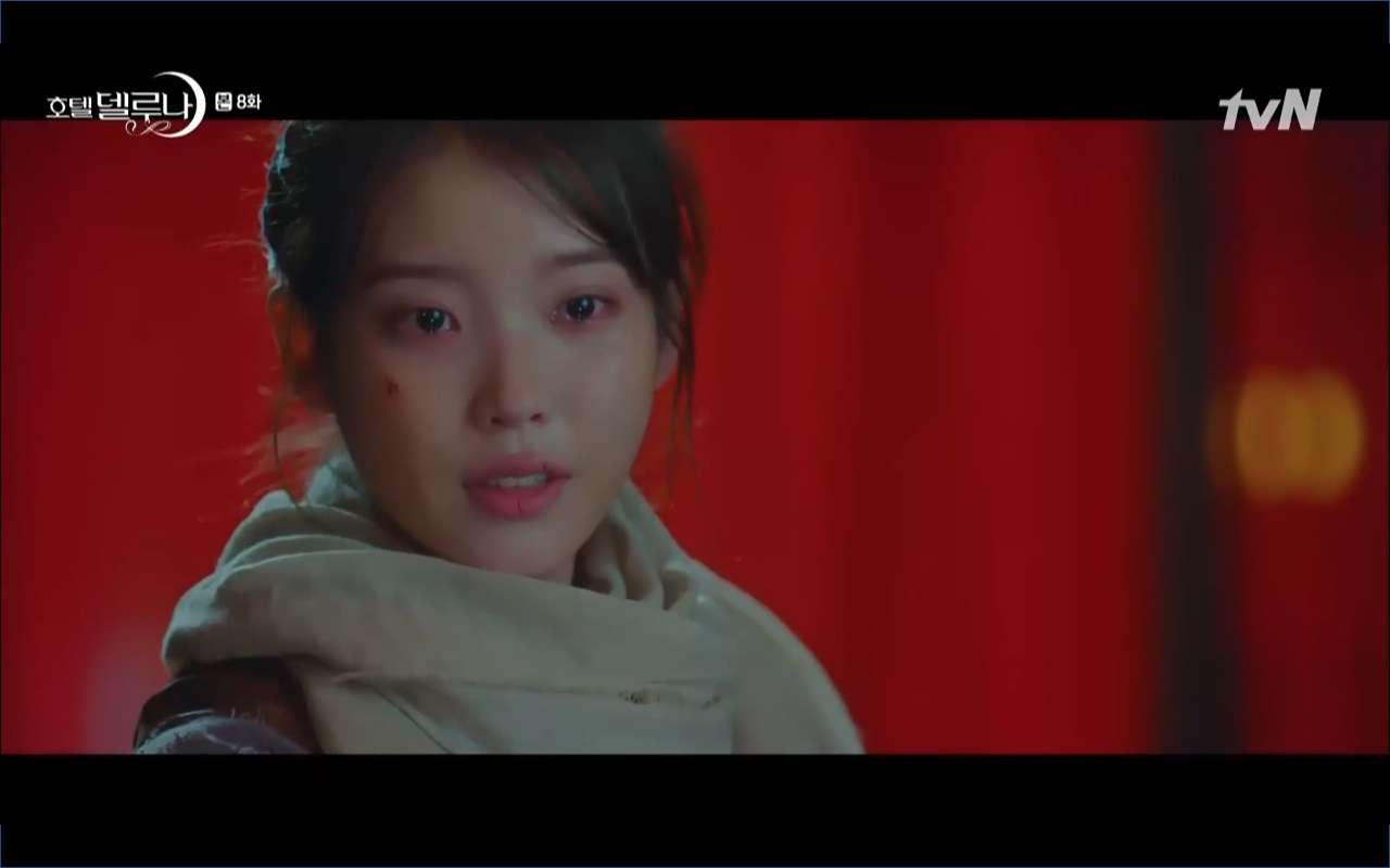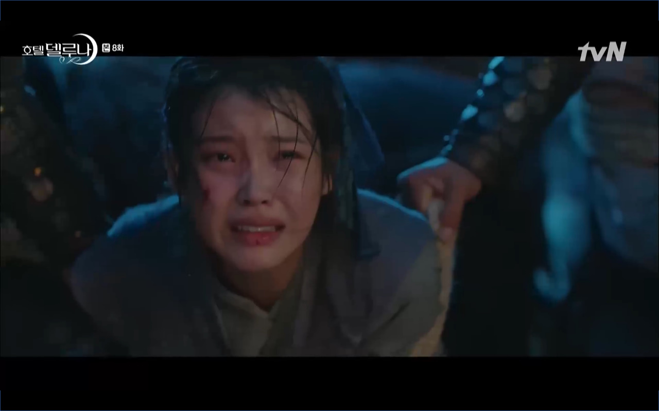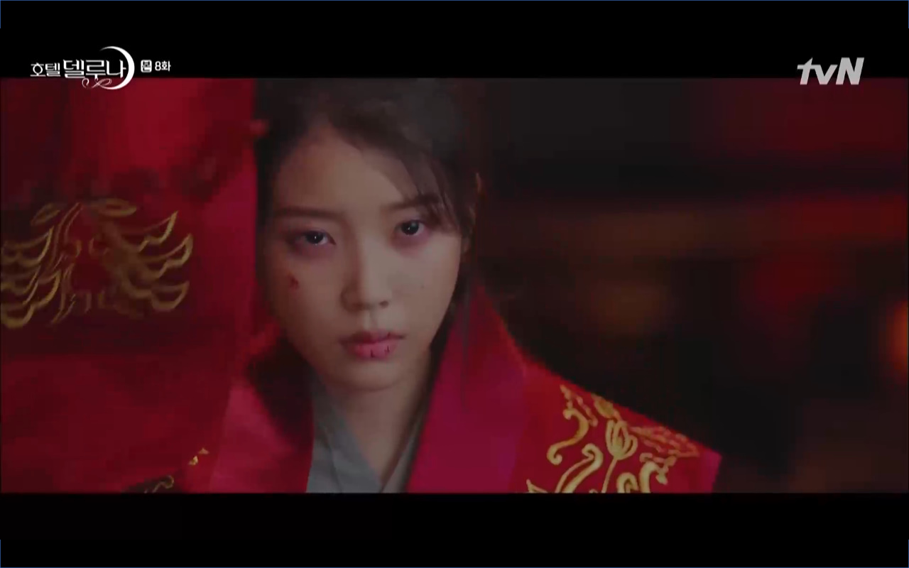 Mở đầu cho tập 8 của Hotel Del Luna là phân cảnh quá khứ của Jang Man Wol (IU). Vào hôn lễ của công chúa Song Hwa và thị vệ Cheon Meong, Man Wol đã đến trước tân lang một bước. Cái chết của Yeon Woo đã khiến Man Wol ôm hận và tự tay kết liễu mạng sống của Song Hwa. Gặp lại thân ảnh của Song Hwa sau ngàn năm khiến cô không thể kìm chế lòng thù hận. Không quan tâm người đứng trước là Lee Mi Ra hay là nàng công chúa năm xưa Man Wol chỉ muốn trực tiếp lấy mạng cô.