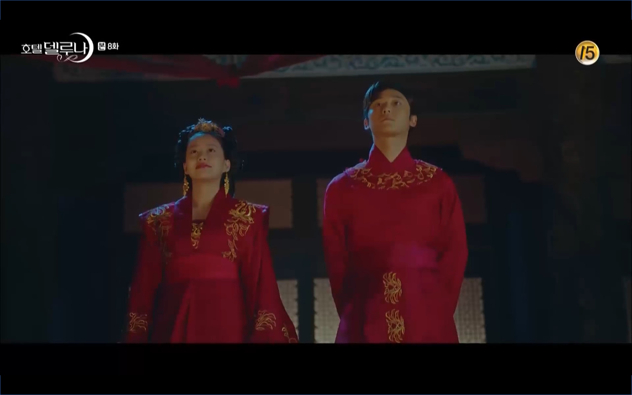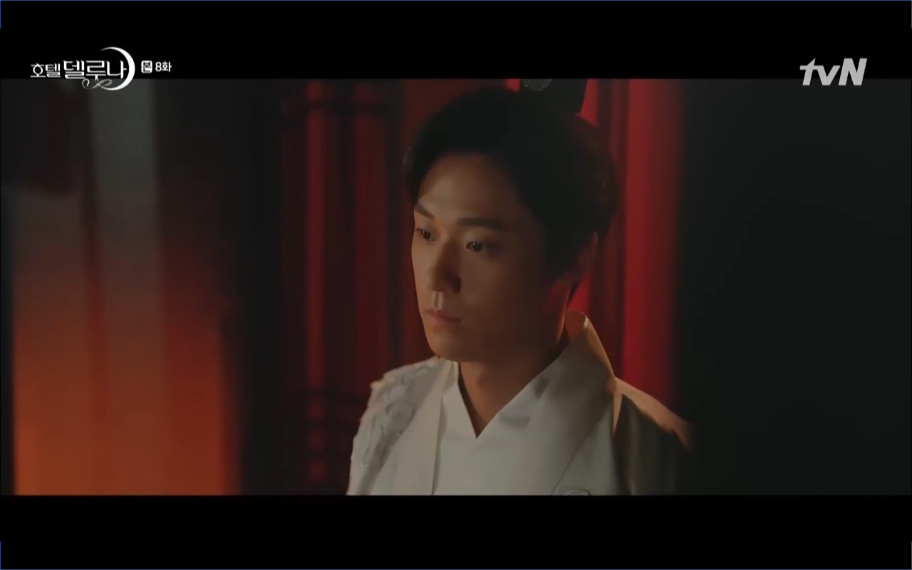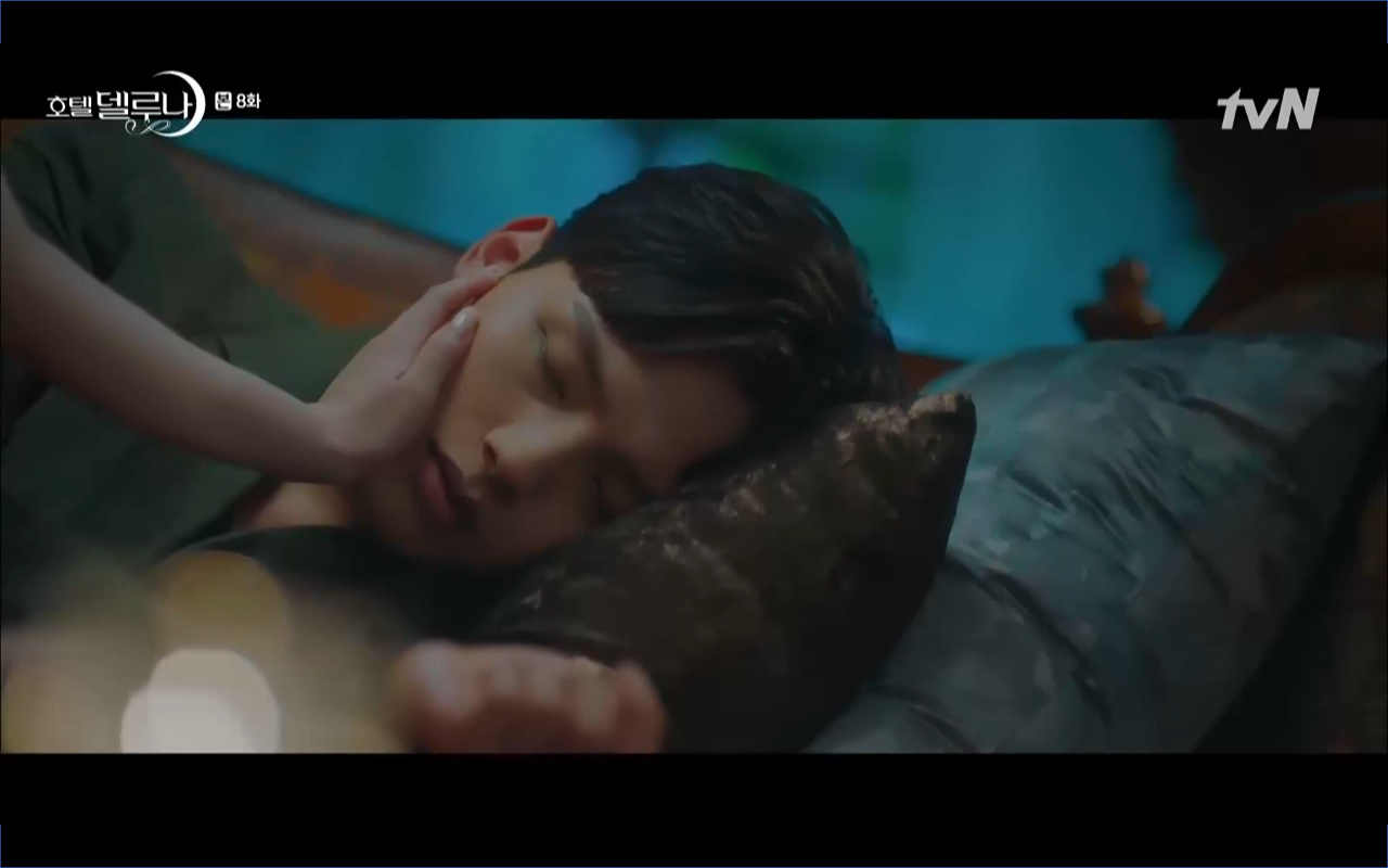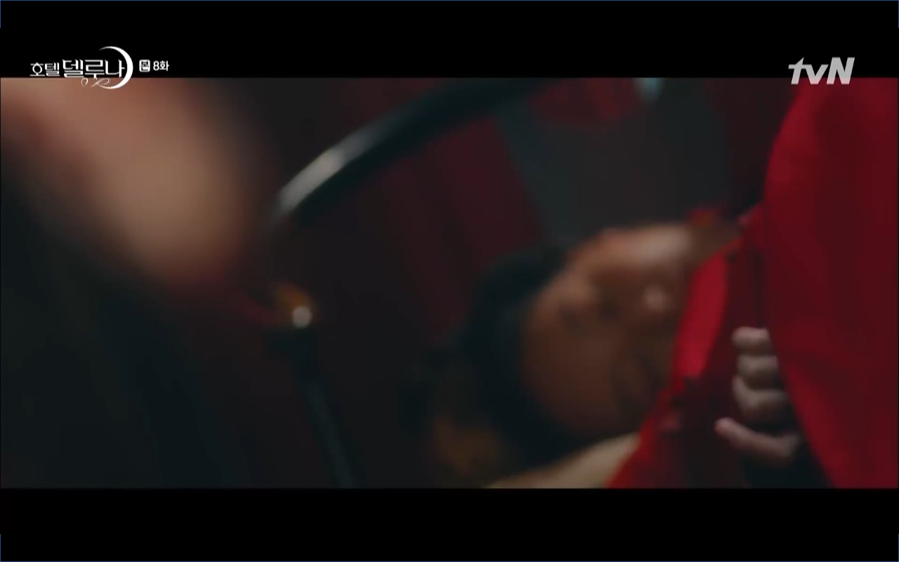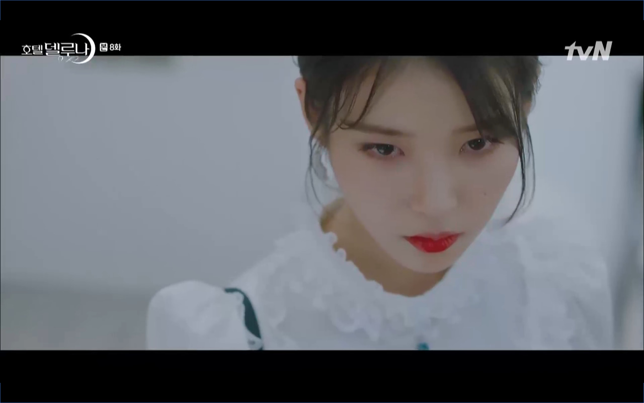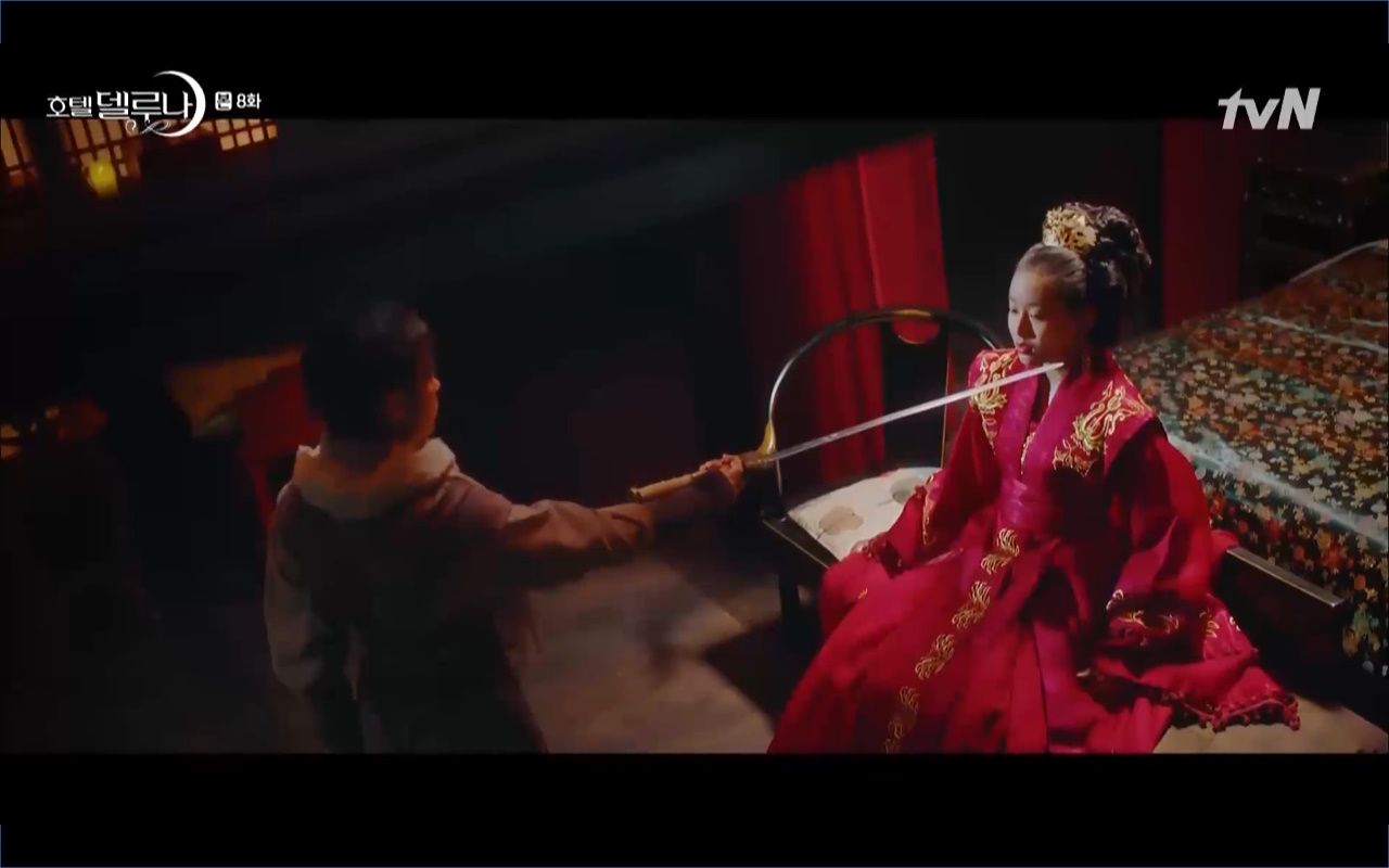Mở đầu cho tập 8 của Hotel Del Luna là phân cảnh quá khứ của Jang Man Wol (IU). Vào hôn lễ của công chúa Song Hwa và thị vệ Cheon Meong, Man Wol đã đến trước tân lang một bước. Cái chết của Yeon Woo đã khiến Man Wol ôm hận và tự tay kết liễu mạng sống của Song Hwa. Gặp lại thân ảnh của Song Hwa sau ngàn năm khiến cô không thể kìm chế lòng thù hận. Không quan tâm người đứng trước là Lee Mi Ra hay là nàng công chúa năm xưa Man Wol chỉ muốn trực tiếp lấy mạng cô.