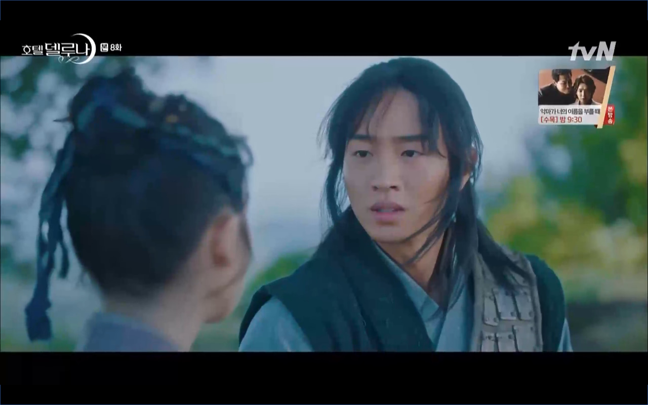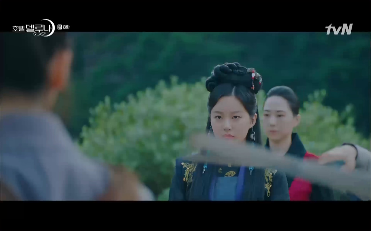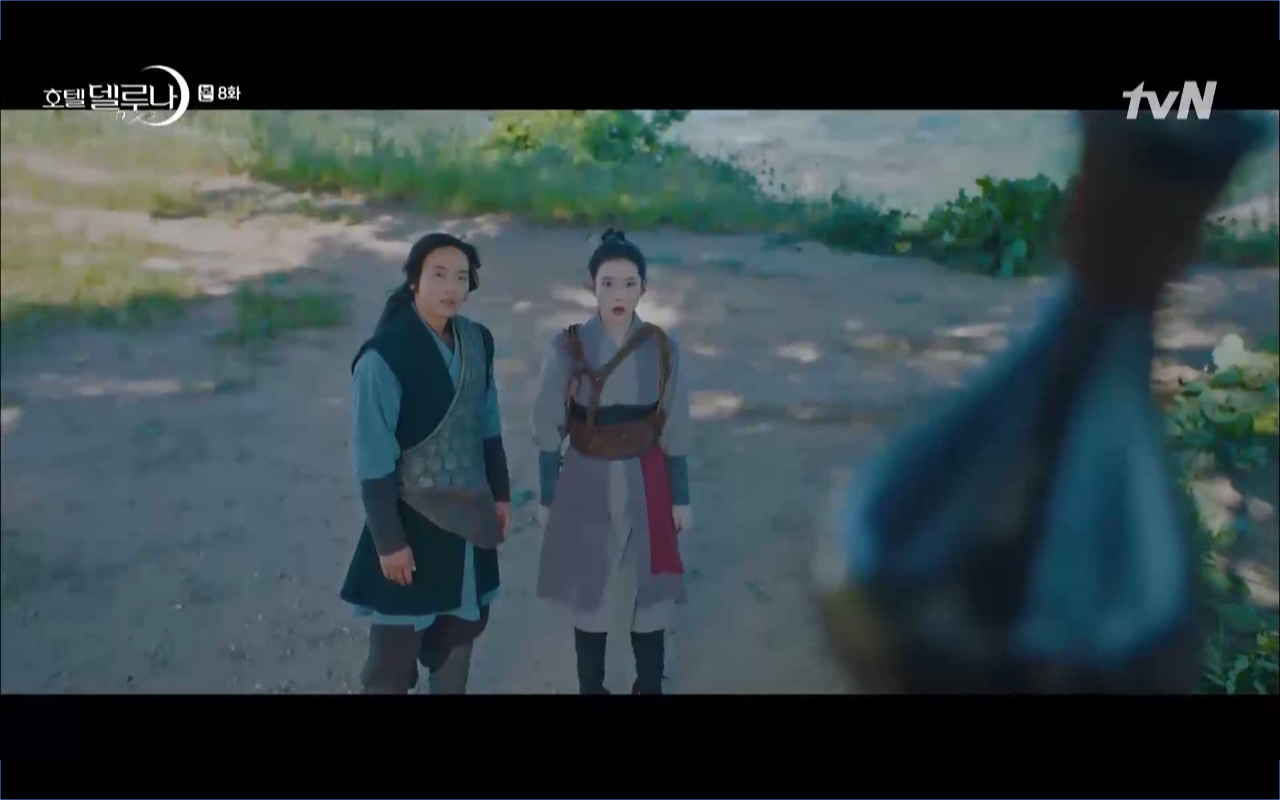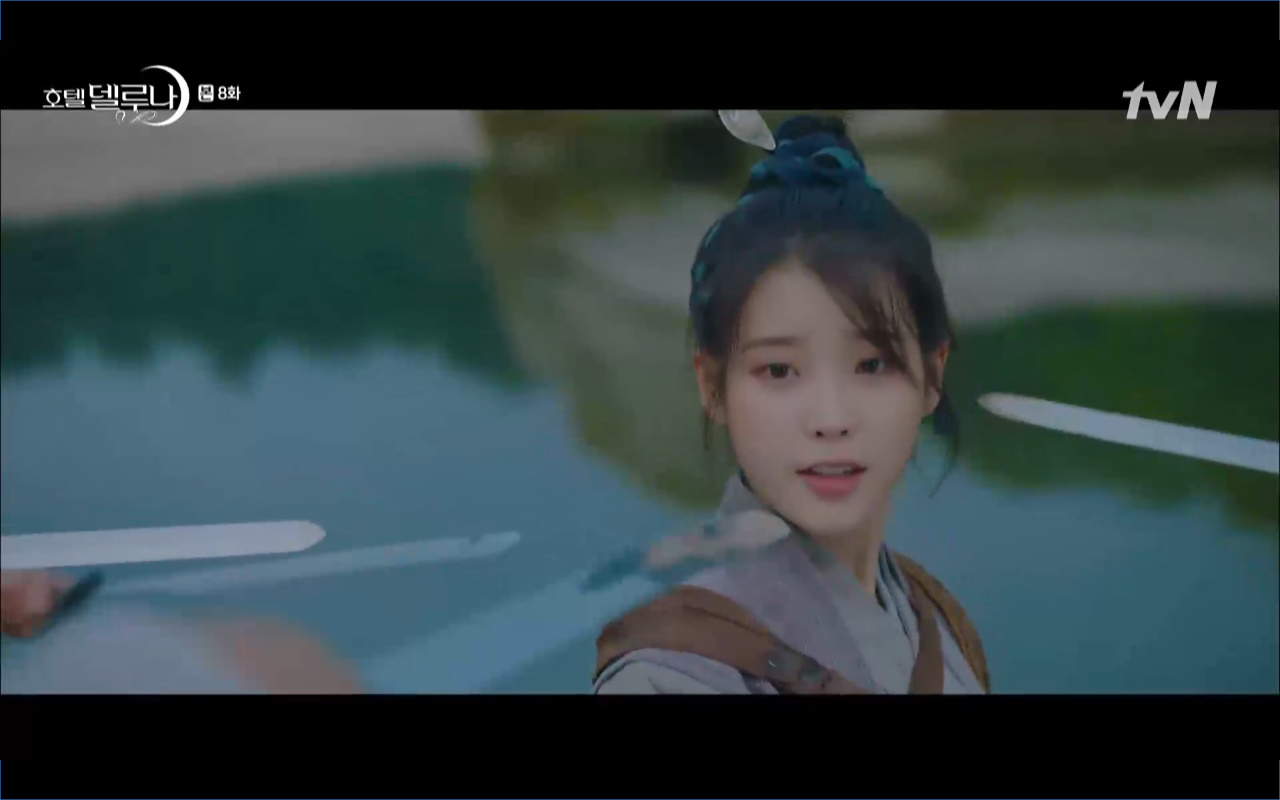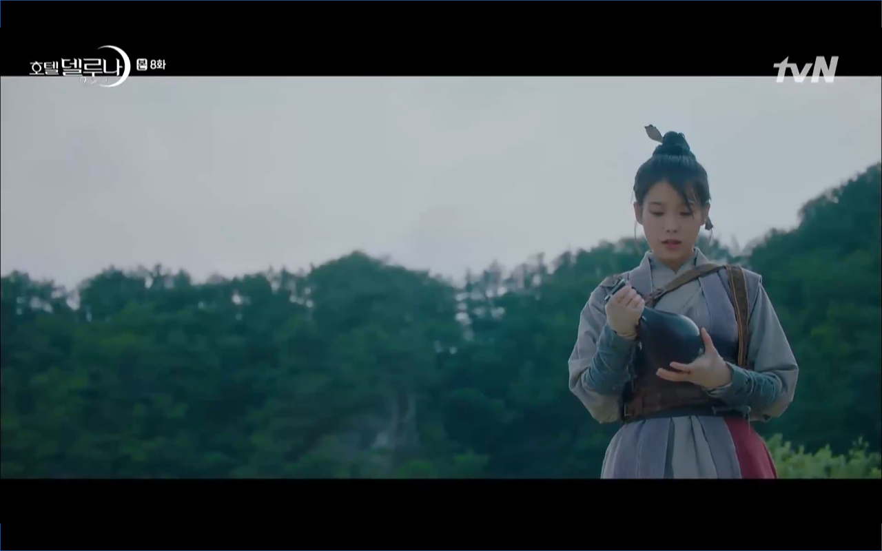 Mở đầu cho tập 8 của Hotel Del Luna là phân cảnh quá khứ của Jang Man Wol (IU). Vào hôn lễ của công chúa Song Hwa và thị vệ Cheon Meong, Man Wol đã đến trước tân lang một bước. Cái chết của Yeon Woo đã khiến Man Wol ôm hận và tự tay kết liễu mạng sống của Song Hwa. Gặp lại thân ảnh của Song Hwa sau ngàn năm khiến cô không thể kìm chế lòng thù hận. Không quan tâm người đứng trước là Lee Mi Ra hay là nàng công chúa năm xưa Man Wol chỉ muốn trực tiếp lấy mạng cô.