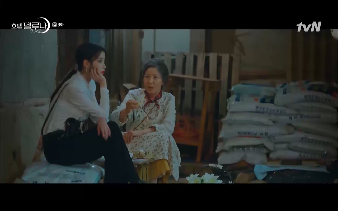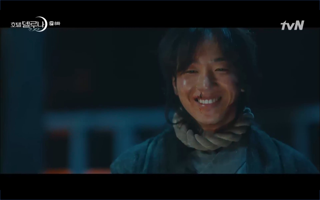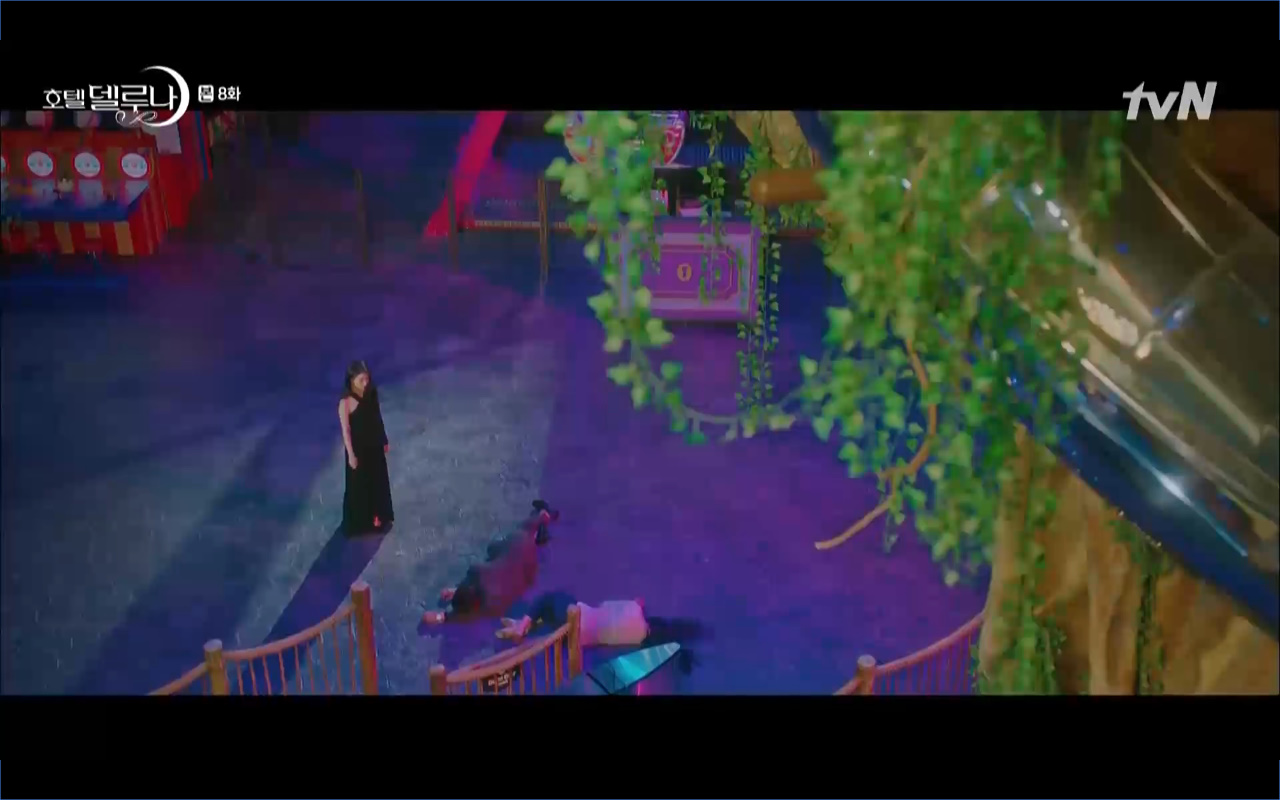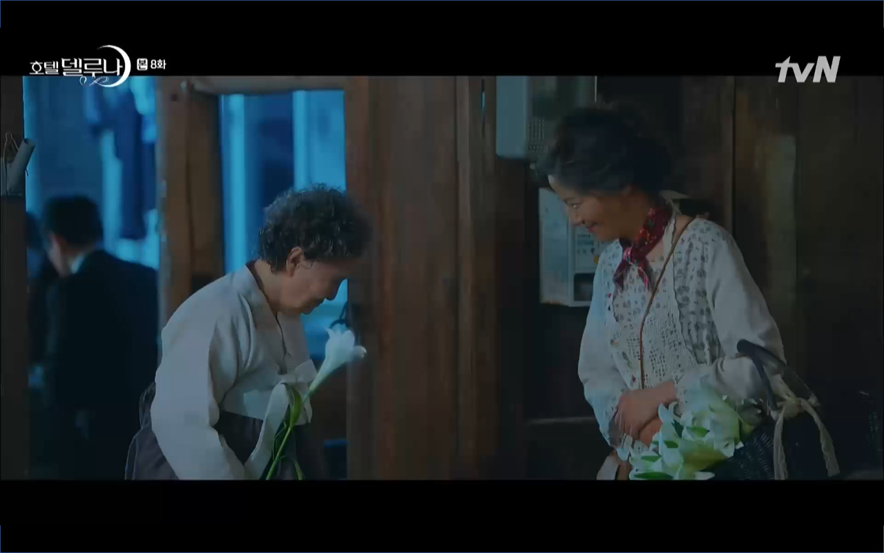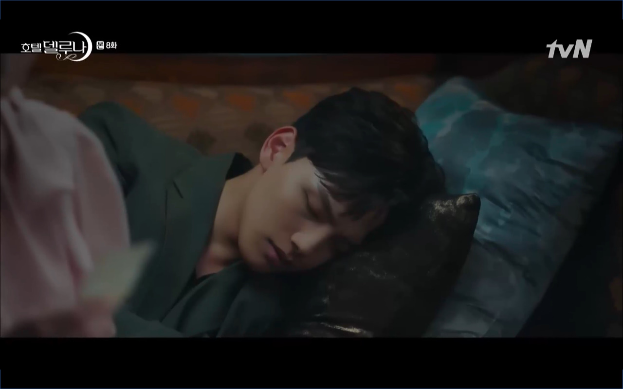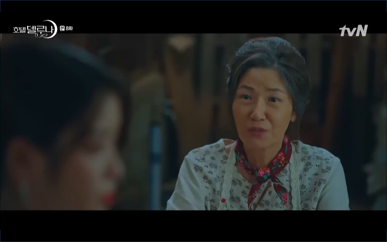 Mở đầu cho tập 8 của Hotel Del Luna là phân cảnh quá khứ của Jang Man Wol (IU). Vào hôn lễ của công chúa Song Hwa và thị vệ Cheon Meong, Man Wol đã đến trước tân lang một bước. Cái chết của Yeon Woo đã khiến Man Wol ôm hận và tự tay kết liễu mạng sống của Song Hwa. Gặp lại thân ảnh của Song Hwa sau ngàn năm khiến cô không thể kìm chế lòng thù hận. Không quan tâm người đứng trước là Lee Mi Ra hay là nàng công chúa năm xưa Man Wol chỉ muốn trực tiếp lấy mạng cô.