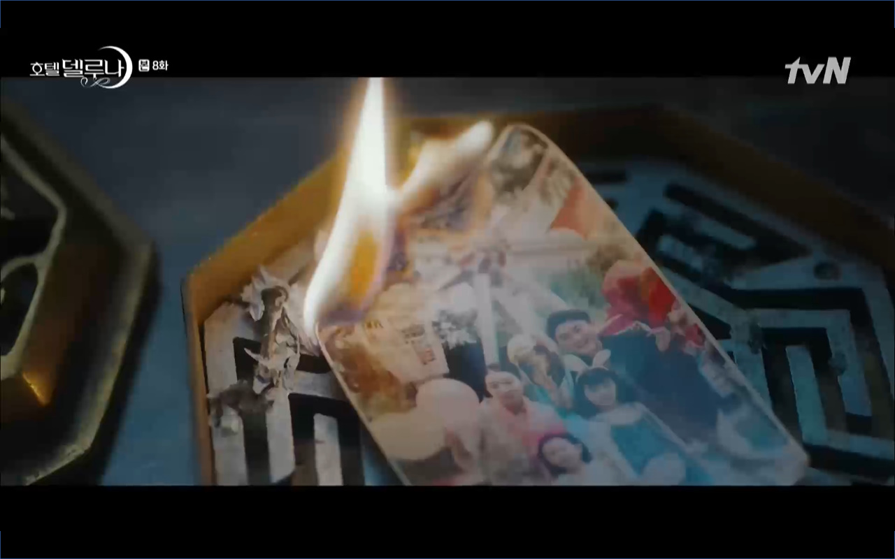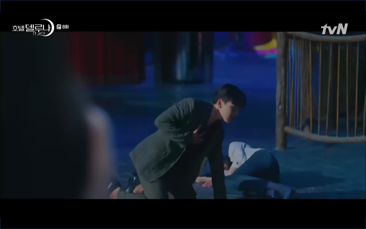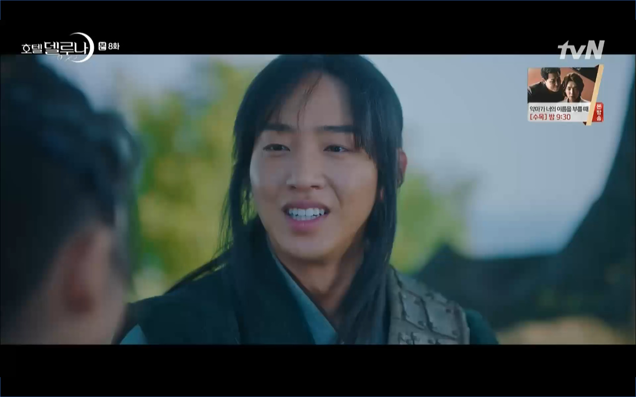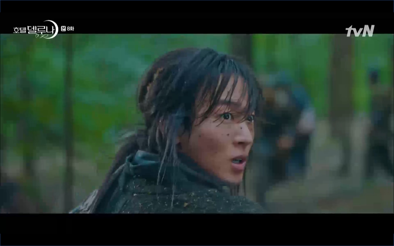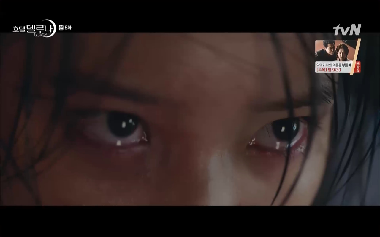 Mở đầu cho tập 8 của Hotel Del Luna là phân cảnh quá khứ của Jang Man Wol (IU). Vào hôn lễ của công chúa Song Hwa và thị vệ Cheon Meong, Man Wol đã đến trước tân lang một bước. Cái chết của Yeon Woo đã khiến Man Wol ôm hận và tự tay kết liễu mạng sống của Song Hwa. Gặp lại thân ảnh của Song Hwa sau ngàn năm khiến cô không thể kìm chế lòng thù hận. Không quan tâm người đứng trước là Lee Mi Ra hay là nàng công chúa năm xưa Man Wol chỉ muốn trực tiếp lấy mạng cô.