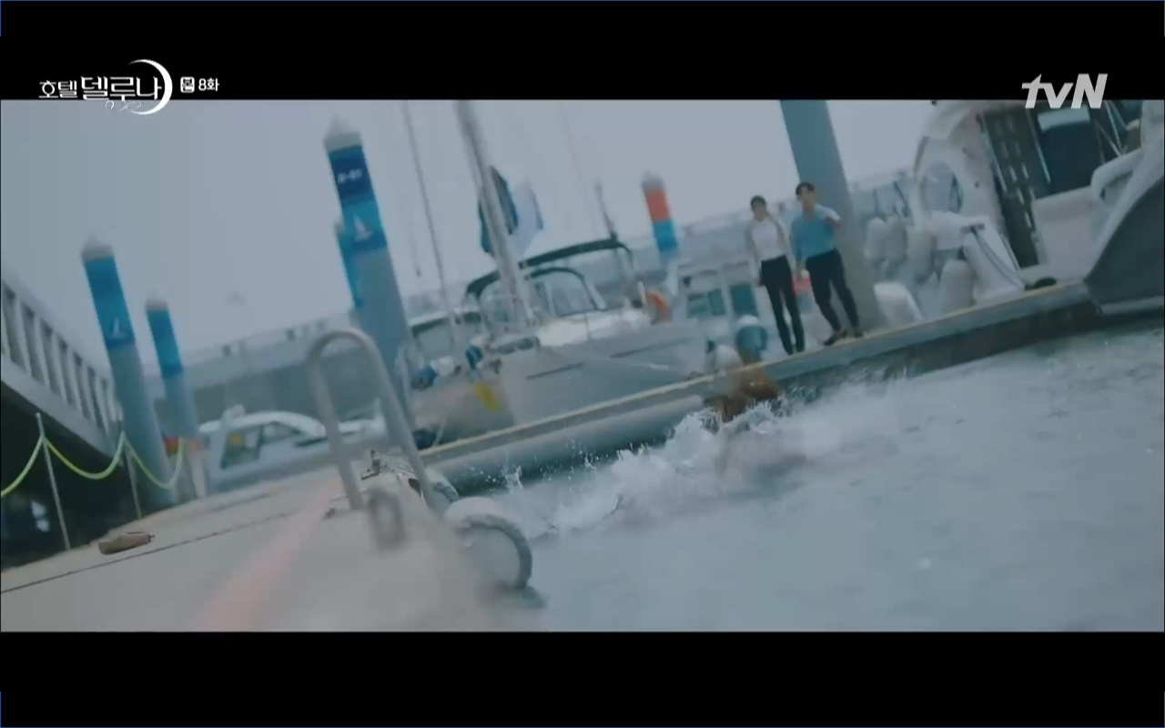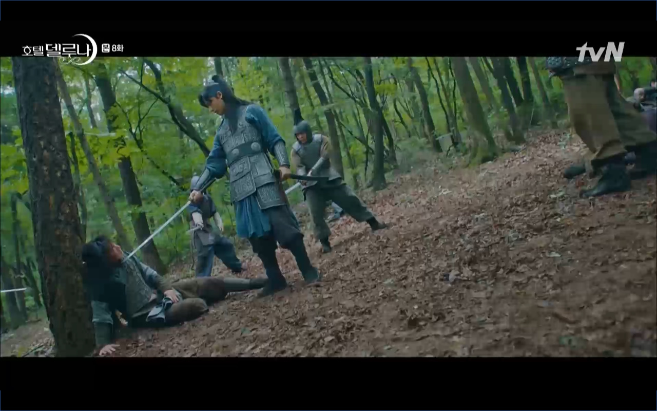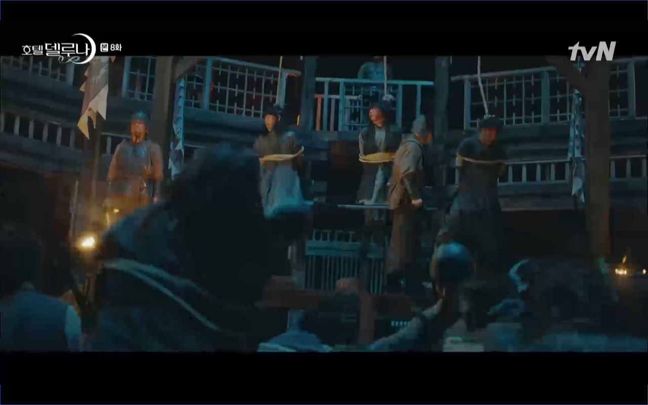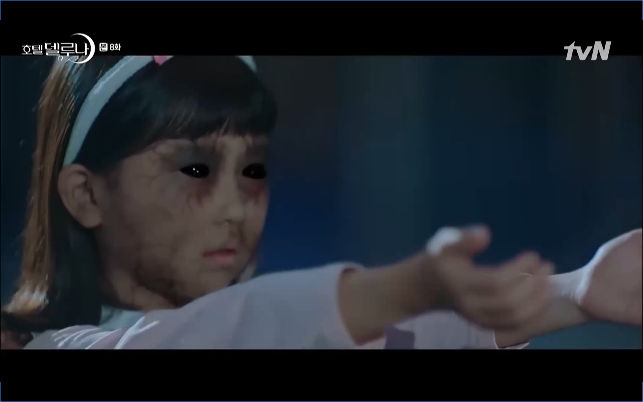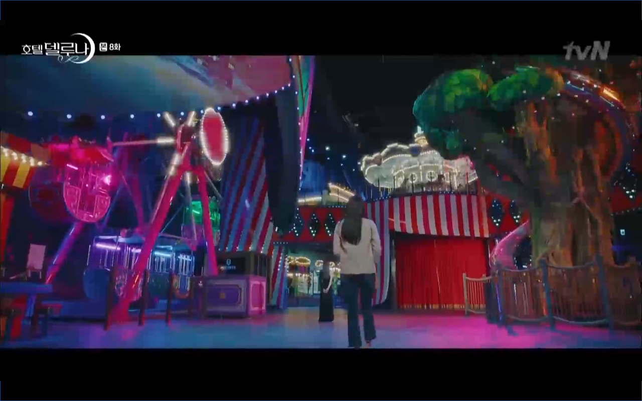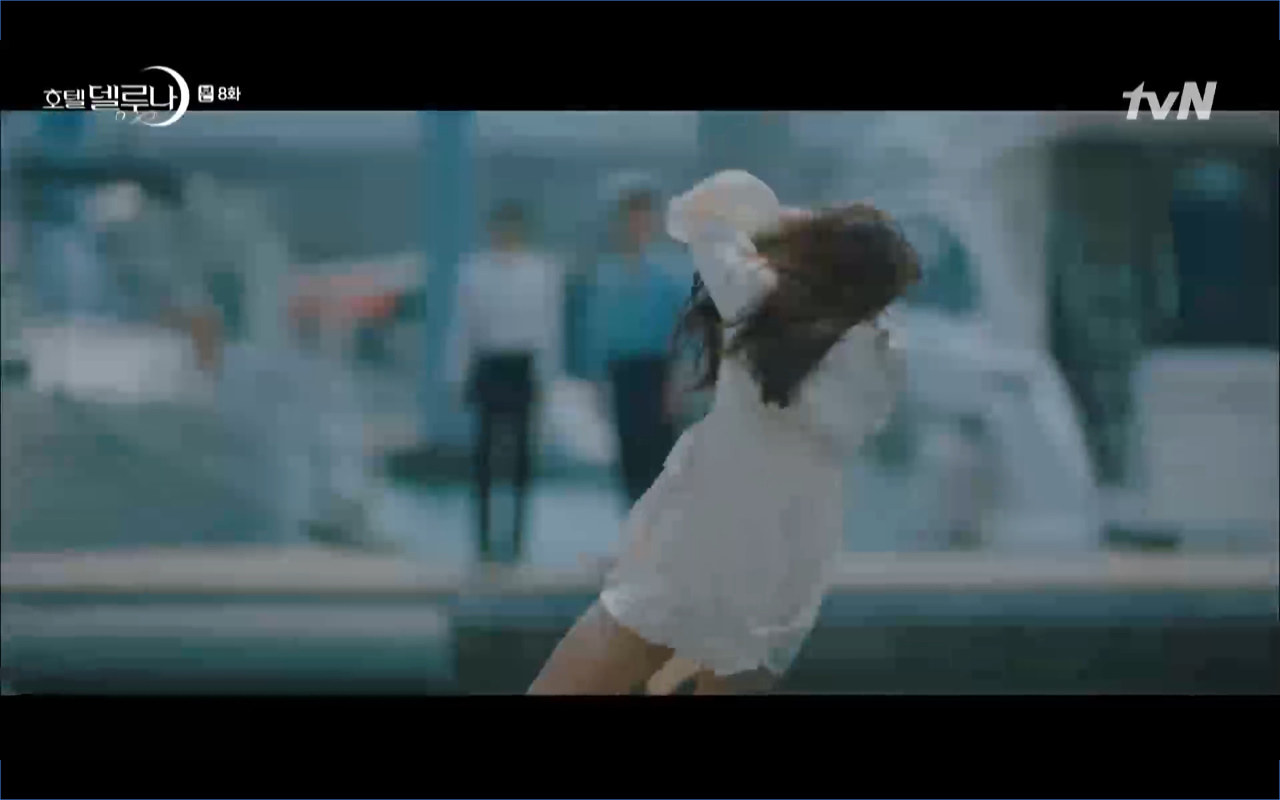 Mở đầu cho tập 8 của Hotel Del Luna là phân cảnh quá khứ của Jang Man Wol (IU). Vào hôn lễ của công chúa Song Hwa và thị vệ Cheon Meong, Man Wol đã đến trước tân lang một bước. Cái chết của Yeon Woo đã khiến Man Wol ôm hận và tự tay kết liễu mạng sống của Song Hwa. Gặp lại thân ảnh của Song Hwa sau ngàn năm khiến cô không thể kìm chế lòng thù hận. Không quan tâm người đứng trước là Lee Mi Ra hay là nàng công chúa năm xưa Man Wol chỉ muốn trực tiếp lấy mạng cô.