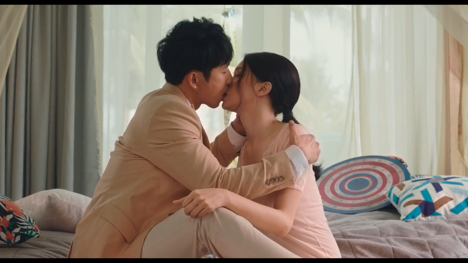 Nụ hôn giữa Tuấn Trần và Hương Giang trong phim.