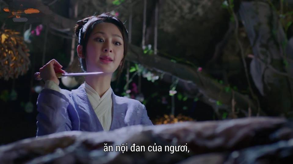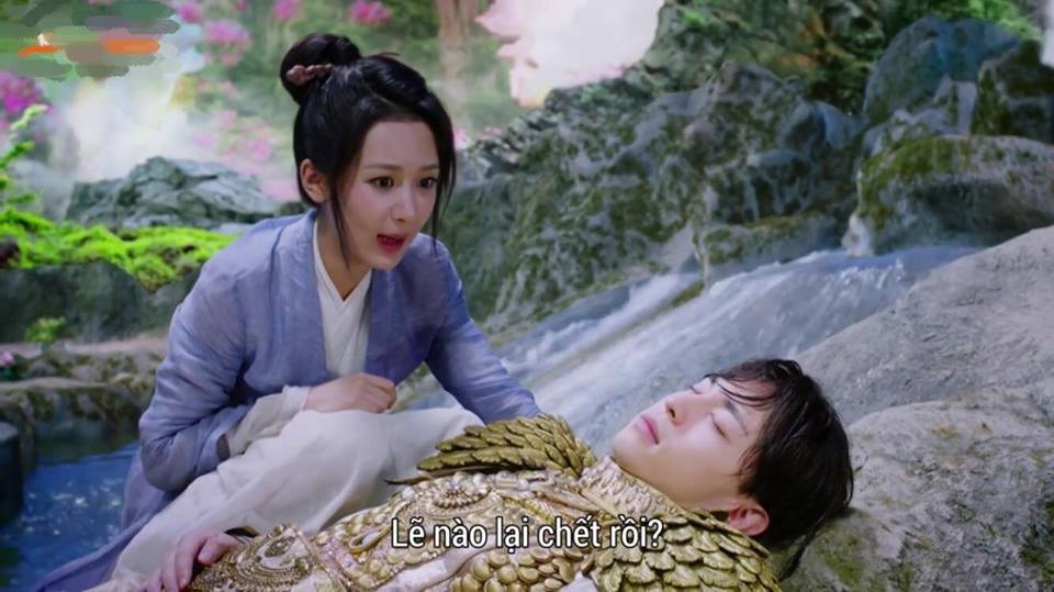 Không những vậy, khi các Hoa thần khác đi tìm con chim to gan đã dám xông vào Thủy Kính, Cẩm Mịch tự cho là vì cứu mạng Húc Phượng còn thẳng chân đạp một phát, dìm luôn Hỏa Thần xuống hồ. Vừa bị nàng Tiểu Bồ Đào “knock out” đã lãnh thêm một cước ngay giữa đầu, Húc Phượng có mạng lớn thế nào cũng suýt thì chết đuối. Cẩm Mịch lại một lần nữa “ban phát” lòng tốt, cho chàng uống 3 giọt hương mật, còn “tặng kèm” thêm 3 nụ hôn hô hấp nhân tạo khiến fan đỏ mặt ngượng ngùng.