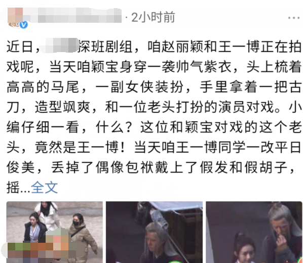 Lúc đó, Triệu Lệ Dĩnh đang đóng phim và người đối diện là một ông lão đầu tóc và râu bạc trắng. Tuy nhiên nếu nhìn kỹ sẽ phát hiện ông lão đó chính là nam chính Vương Nhất Bác. Đây là lần đầu tiên tạo hình lão niên của Vương Nhất Bác được tiết lộ trong Hữu Phỉ. Nhiếp ảnh gia đó nói rằng hôm đó Vương Nhất Bác như lột bỏ hình ảnh của một thần tượng. Đội tóc giả và mang thêm râu giả bạc phơ, cả thân người như toát ra hơi thở của một lão nhân gia thần tiên.