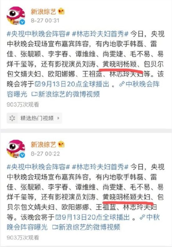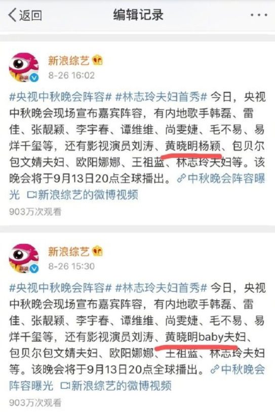 Nhưng thời gian gần đây, mọi chuyện dường như lại phức tạp và khó hiểu đến từ những phía truyền thông lớn và uy tín nhất Trung Quốc. Sina giải trí đăng tải danh sách minh tinh tham dự đêm trung thu, nhưng đến cặp Angelababy - Huỳnh Hiểu Minh lại sửa tới sửa lui danh xưng. Đầu tiên là “vợ chồng Huỳnh Hiểu Minh Baby”, sau đó lại đổi thành “Huỳnh Hiểu Minh, Dương Dĩnh”, tiếp đến lại thay đổi “vợ chồng Huỳnh Hiểu Minh Dương Dĩnh”. Cuối cùng, chốt hạ sau vài phút chỉ còn “Huỳnh Hiểu Minh, Dương Dĩnh”, cụm “vợ chồng” bị bỏ đi.