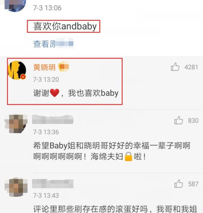Giữa những tin đồn hôn nhân rạn nứt trên mạng xã hội, thậm chí có người còn đưa tin cả hai đã ly hôn, Huỳnh Hiểu Minh và Angelababy mới đây đã trực tiếp đáp trả, phủ nhận những chuyện này. Nhân viên phòng làm việc bên phía Angelababy trực tiếp trả lời tin đồn này là quá giả, trong khi đó Huỳnh Hiểu Minh nhẹ nhàng gián tiếp phủ nhận chuyện ly hôn bằng câu nói ngắn gọn khi phản hồi bình luận của fan: “Tôi cũng thích Angelababy“. Nam diễn viên cũng vừa mới thắng kiện kẻ tung tin đồn cho rằng anh ly hôn với số tiền hơn 60 ngàn NDT (Tương đương 200 triệu đồng).