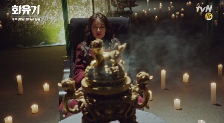 Mặt khác sau khi được Đông tướng quân mang lư hương chứa máu Đường Tăng từ chỗ Ma vương về, Ah Sa Nyeo bắt đầu tiến hành kế hoạch tráo đối thân thể với Đường Tăng. Vì vậy mà Jin Seon Mi bắt đầu có những giấc mơ kì lạ lặp đi lặp lại về việc cô mặc đồ cưới thời xa xưa. Chưa hết cô còn bắt đầu nhìn thấy trước tương lai bất trắc của người khác. Nhờ vậy mà cô đã cứu được một em bé khỏi bị tai nạn.