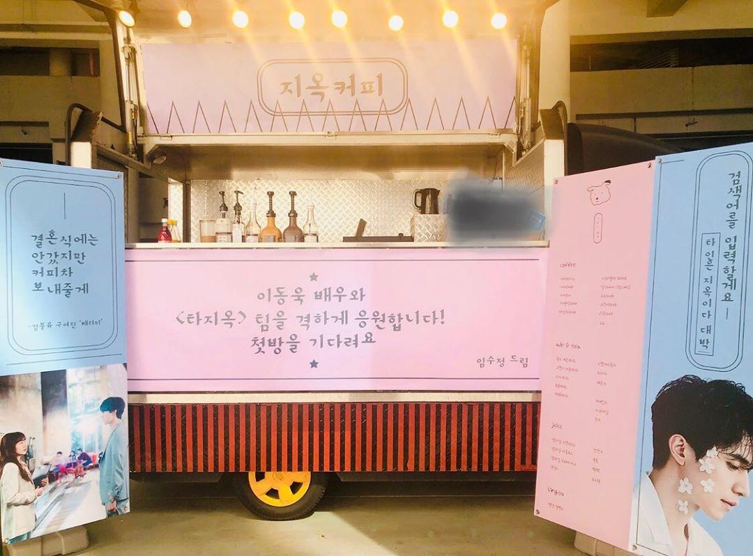 Chiếc xe tải xinh xắn lấy màu hồng và xanh làm chủ đạo, kiểu thiết kế đơn giản nhưng sang trọng và bắt mắt. Banner kèm theo hình ảnh về cuộc gặp gỡ của Lee Dong Wook và Im Soo Jung. Trên đầu xe có chữ “Cà phê 'địa ngục' (biến tấu từ tên của bộ phim)'” .Tiếp đến, nữ diễn viên nhắn nhủ với thông điệp dí dỏm tinh nghịch: “Chị đã không tham dự đám cưới của cậu, thay vào đó, chị đã gửi cho cậu một chiếc xe tải cà phê nè”.
