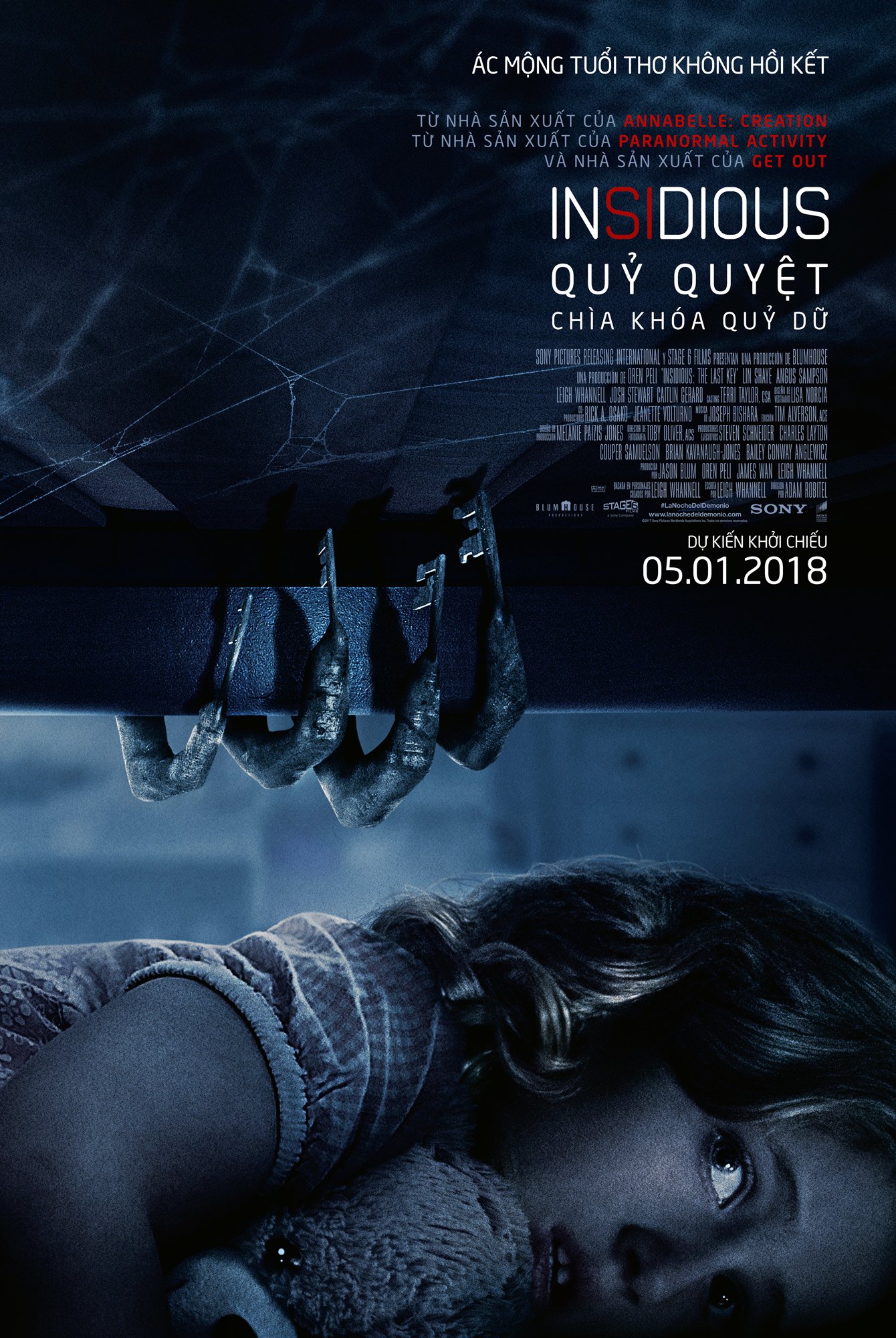 Trải qua 3 phần phim có doanh thu cao, Insidious hiện là một trong những series thành công nhất của thể loại kinh dị. Những hình tượng đầy ám ảnh như hồn ma mặc váy cô dâu, hay ác quỷ mặt đỏ đã trở nên nổi tiếng với khán giả. Liệu bà đồng Elise và những chuyến du hành rùng rợn tới cõi ma có tiếp tục gặt hái thành công nữa hay không? Hãy cùng đón chờ Insidious: The Last Key sẽ ra mắt ngày 5/1 tới.