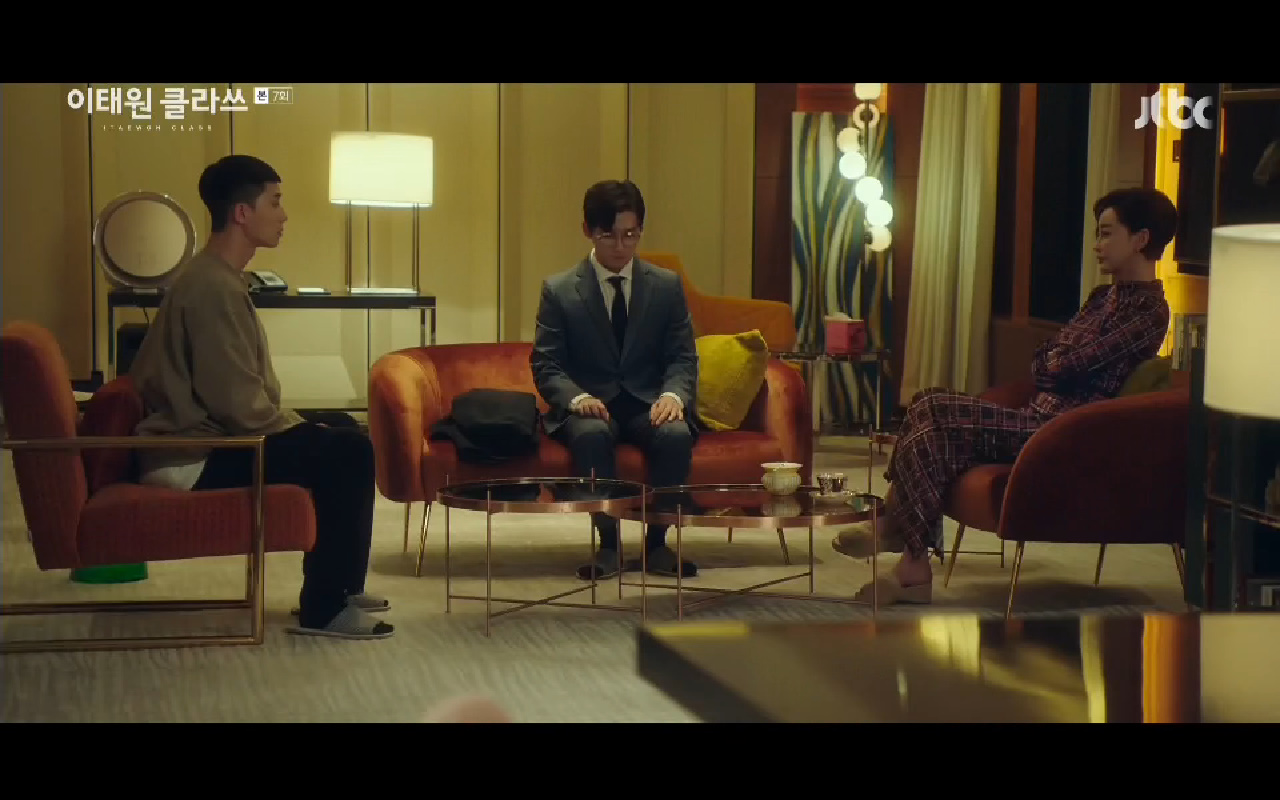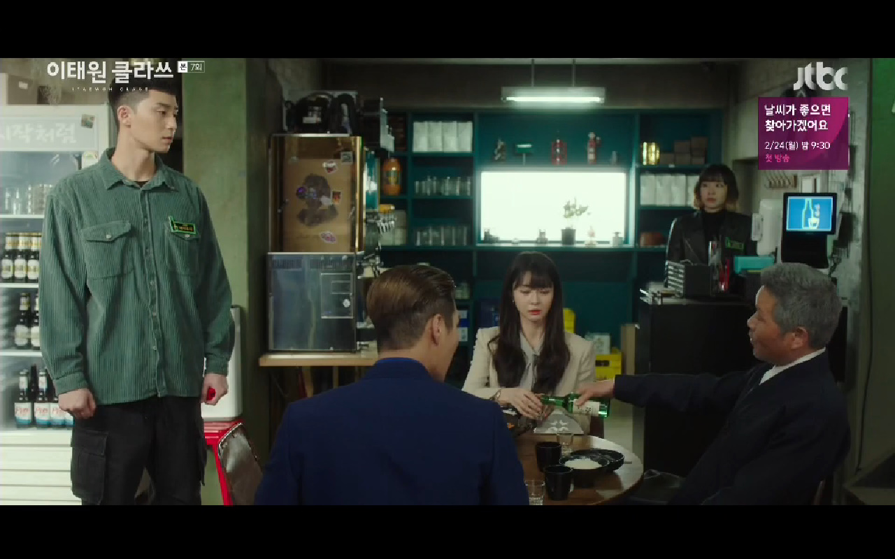 Mở đầu tập 7 của Itaewon Class (Tầng lớp Itaewon) là cuộc gặp định mệnh đầy căng thẳng giữa Park Saeroyi (Park Seo Joon) và chủ tịch Jangga - Jang Dae Hee. Sau nhiều năm chịu đựng trong tù và ở vị thế thấp hơn giờ đây Saeroyi đã đường đường chính chính trở lại ở nơi có thể đối đầu với Jang Dae Hee. Dù Dae Hee có hạ thấp sự liều lĩnh đầu tư vào Jangga với số tiền bồi thường của cha mình như thế nào anh vẫn cố gắng nhẫn nhịn. Đã có thể căm chịu gần 10 năm thì giờ phút này Saeroyi cần tiếp tục để mọi bước đi trong kế hoạch được thuận lợi/