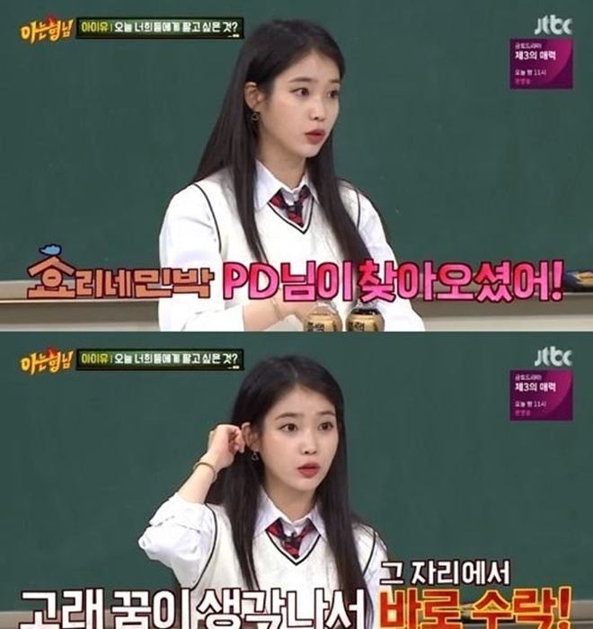 IU giải thích rằng ngay sau giấc mơ đó, cô đã nhận được một đề nghị tham gia chương trình thực tế: “Em ở trên Inkigayo, và nhà sản xuất 'Hyori's Bed & Breakfast' đến gặp em và mời em đến đảo Jeju. Em đang nghĩ về nó, và em nghĩ hai con cá voi đó có lẽ là chị Hyori và 'tiền bối' Sang Soon.Tôi đã có một khoảng thời gian tuyệt vời khi ở Đảo Jeju, và tôi có nhiều năng lượng tốt”.